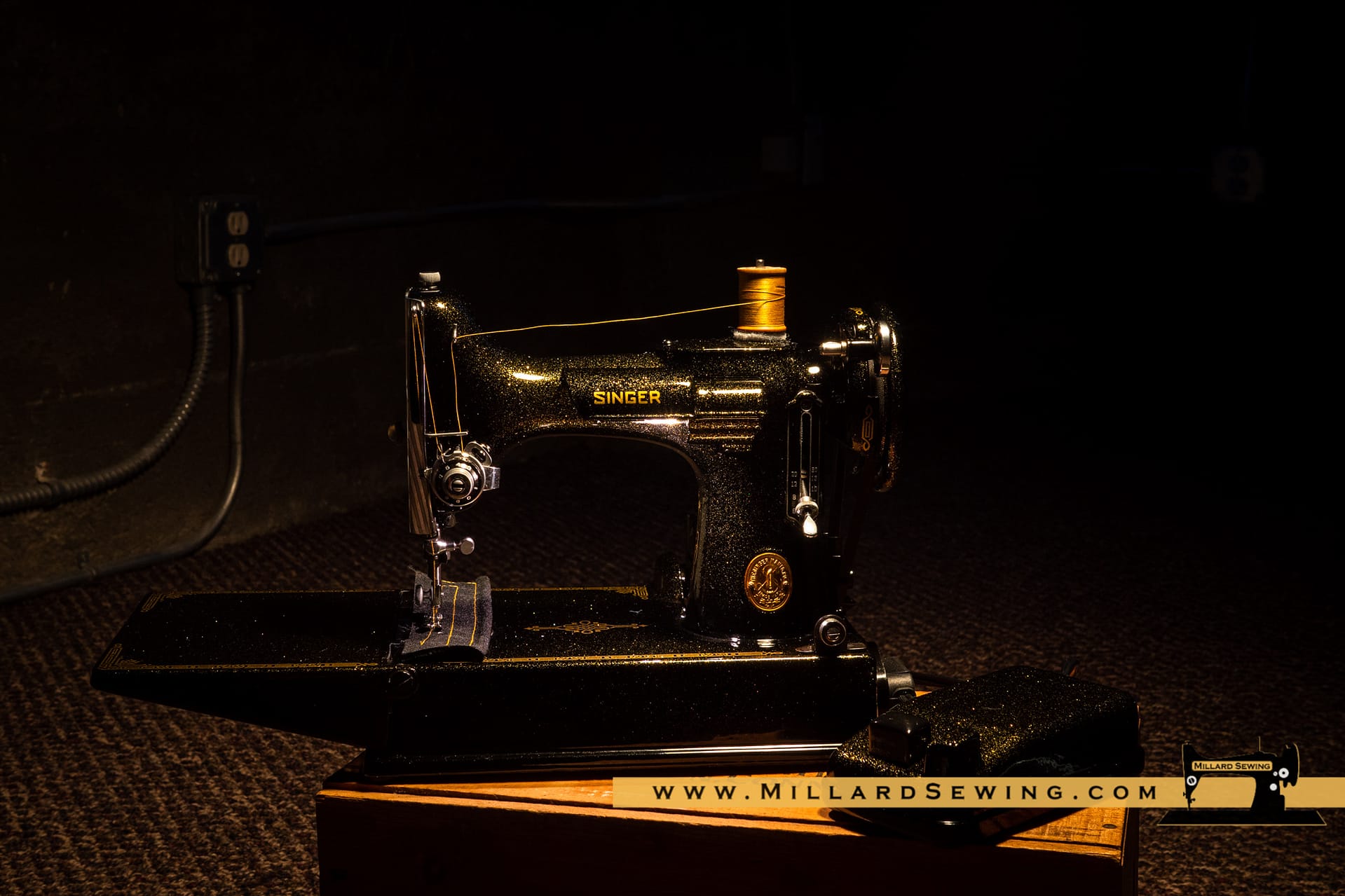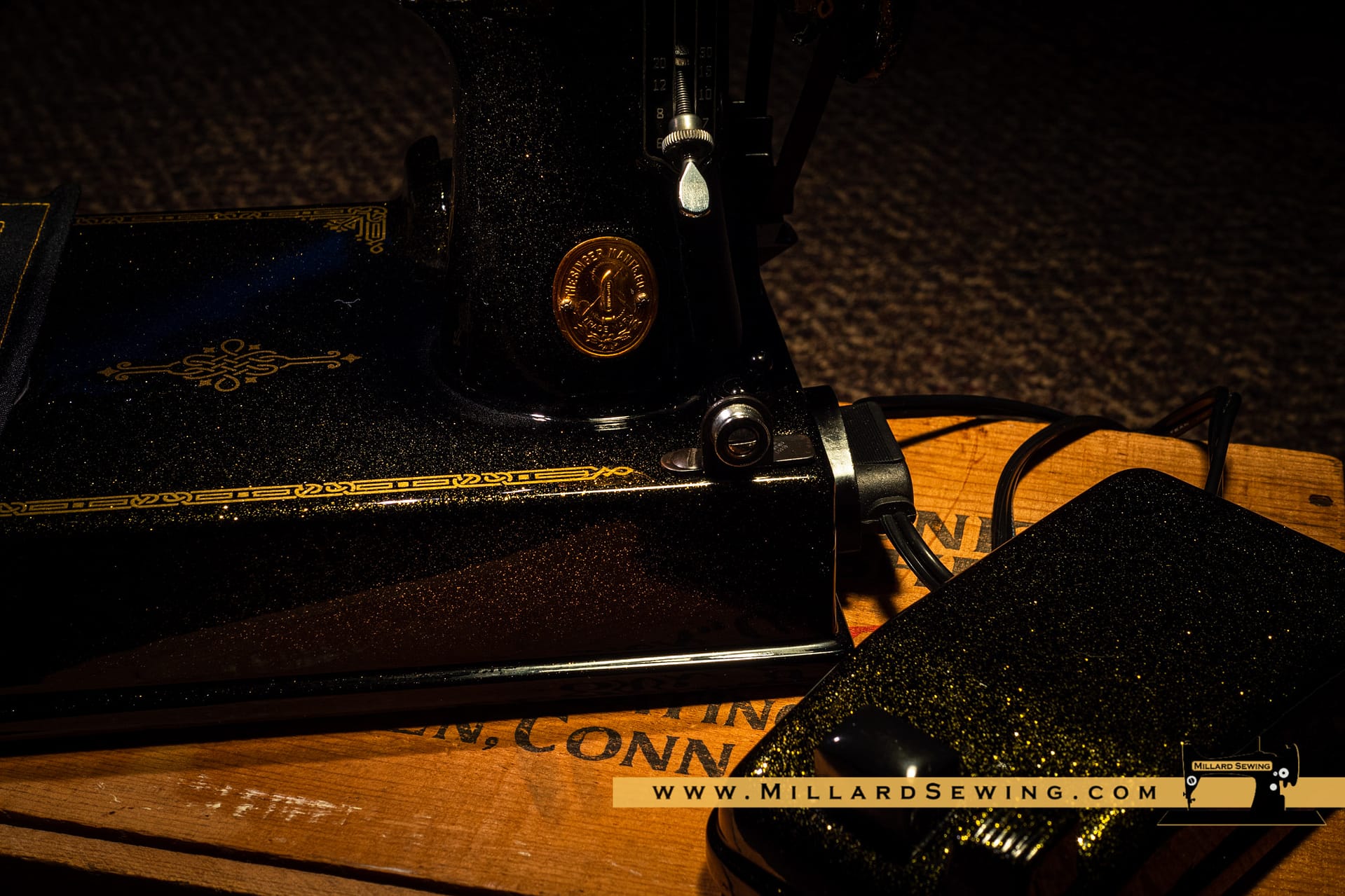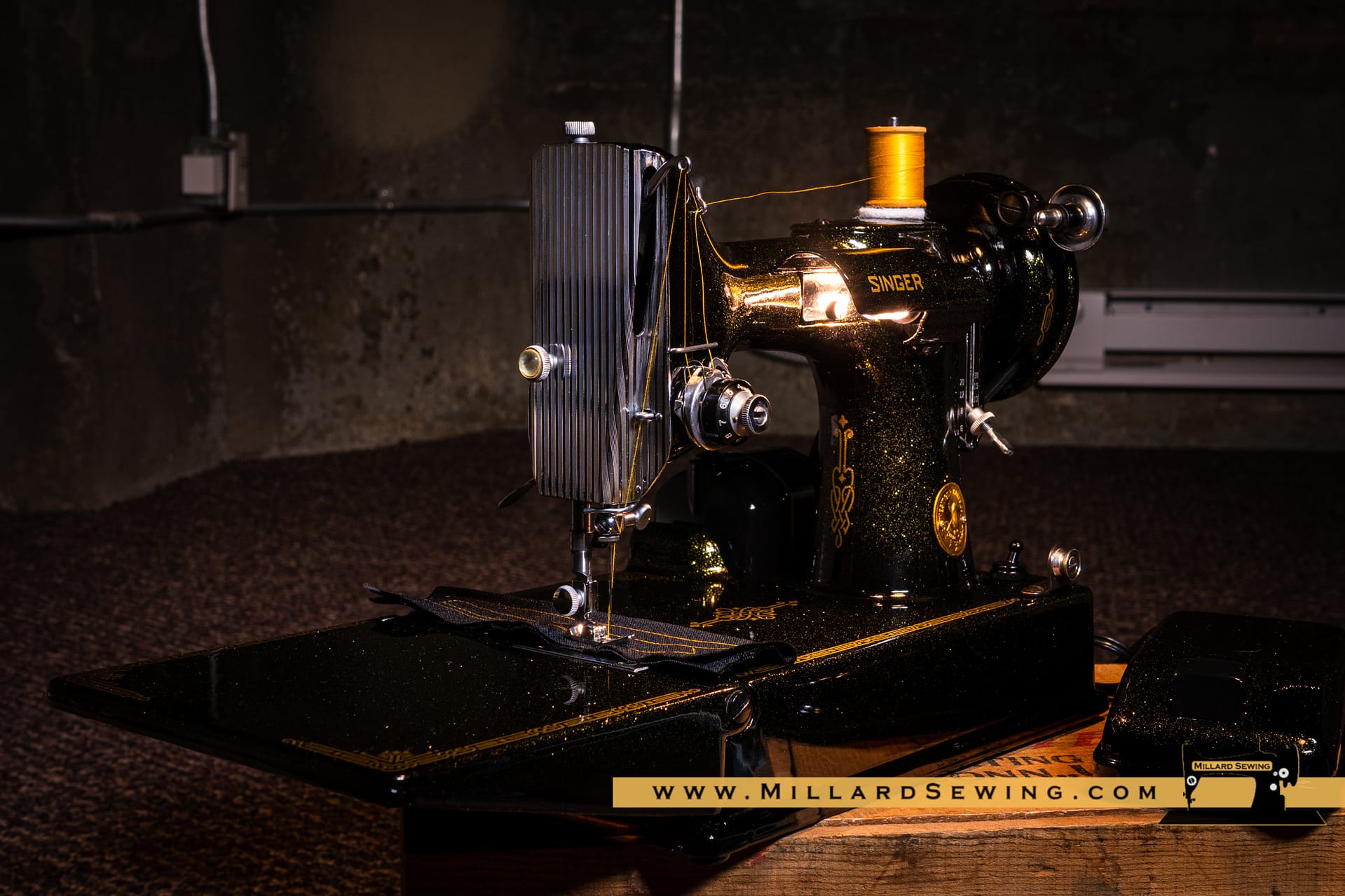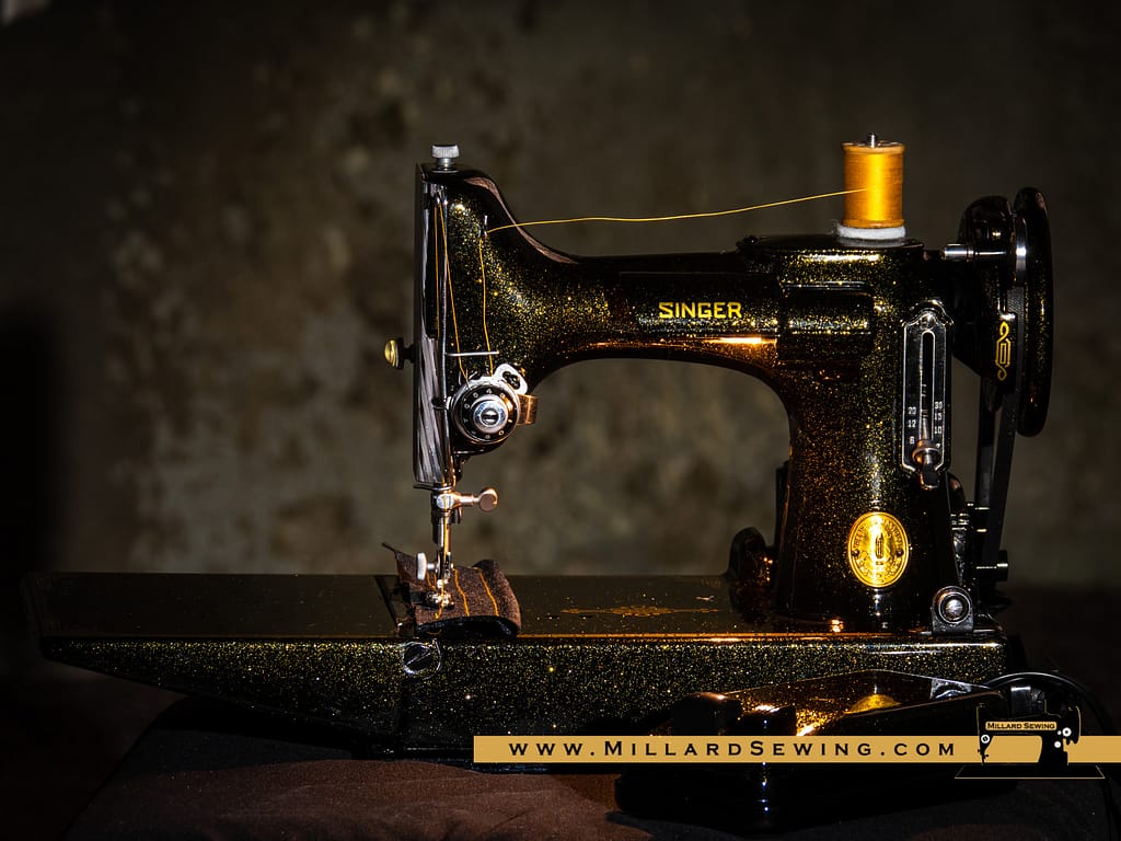 The Singer 221 Featherweight is easily one of the most recognizable sewing machines there is. It’s also one of the most often customized machines that you will find. We had thought about doing something on one of these little gems for a while, but hadn’t gotten around to it yet. Then we got an email from a customer. She had a request and with the help of Phil at Syrarium Studios we think we have fulfilled her request and then some. And if not, she’s always welcome to send it back, we already miss the little guy around the shop!