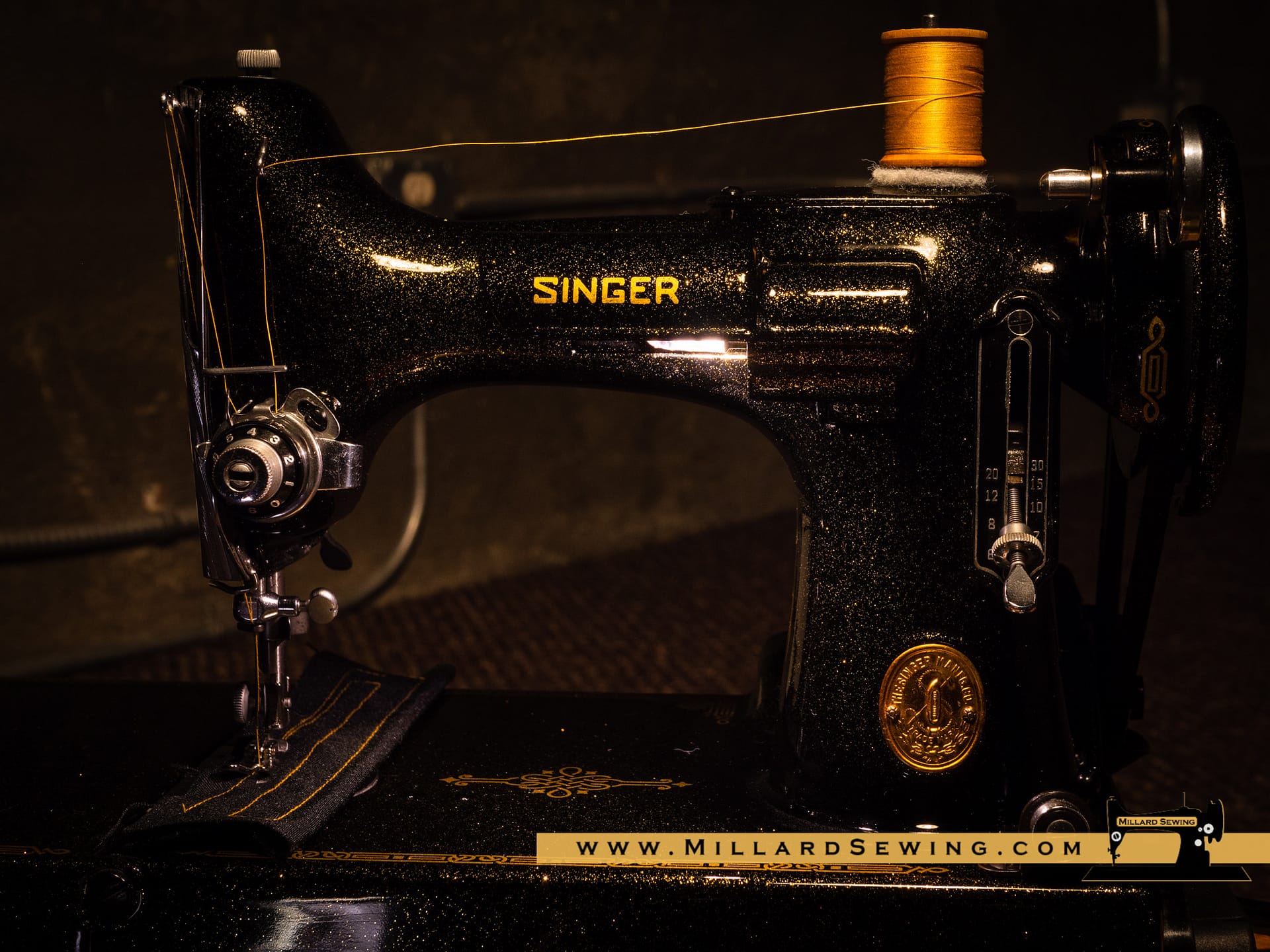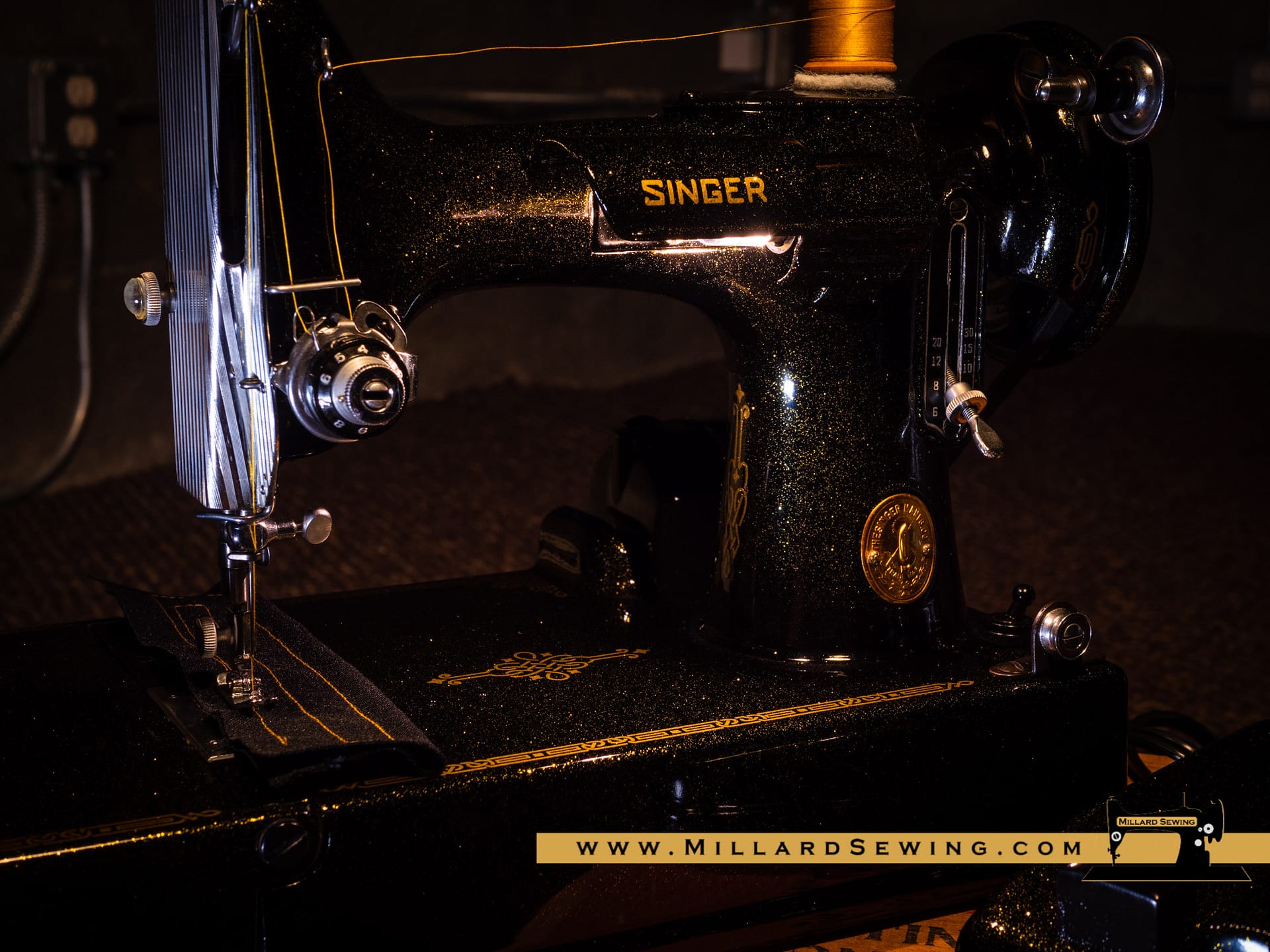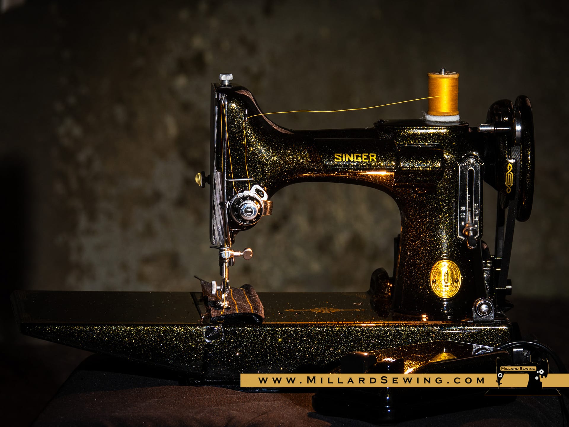 The Singer 221 Featherweight is easily one of the most recognizable sewing machines there is. It’s also one of the most often customized machines that you will find. We had thought about doing something on one of these little gems for a while, but hadn’t gotten around to it yet. Then we got an email from a customer. She had a request and with the help of Phil at Syrarium Studios we think we have fulfilled her request and then some. And if not, she’s always welcome to send it back, we already miss the little guy around the shop!