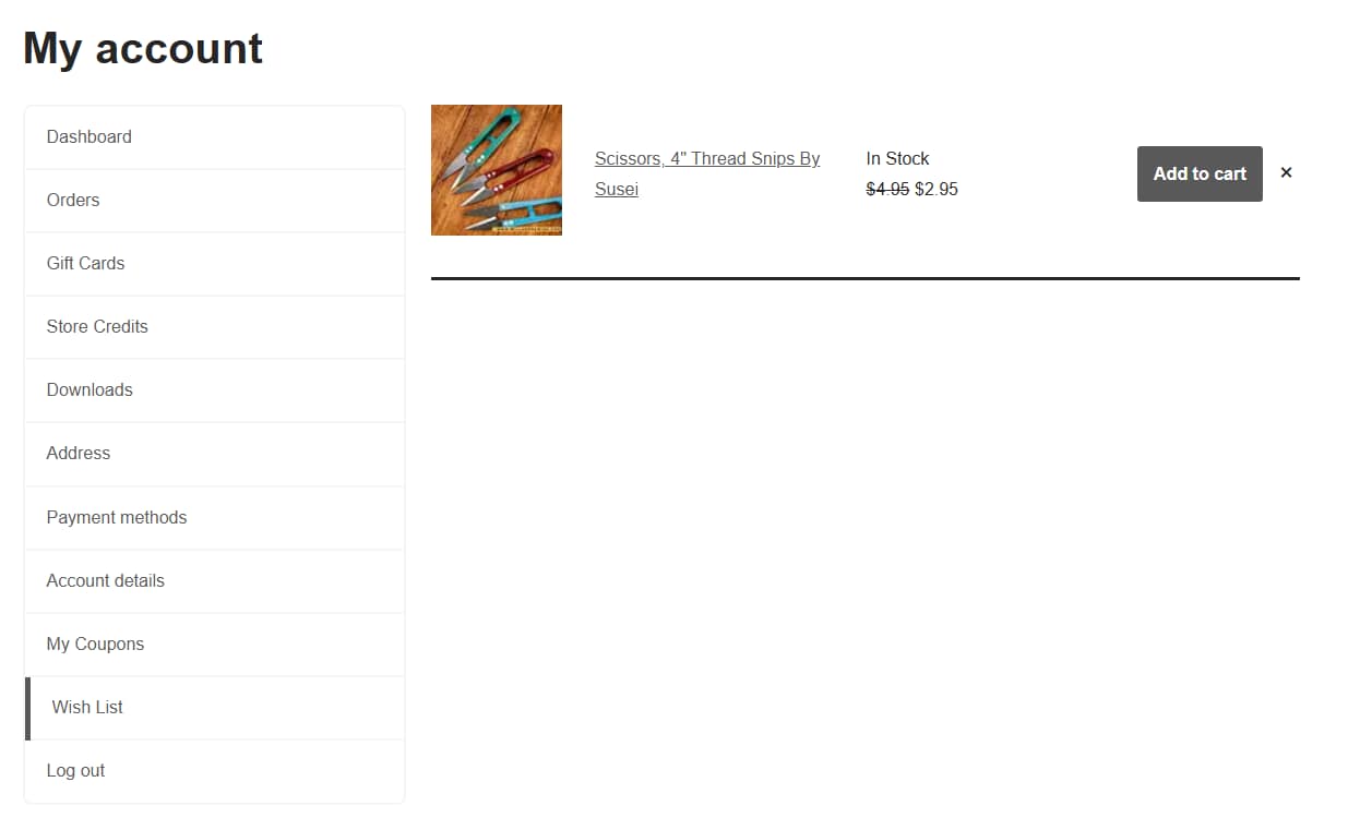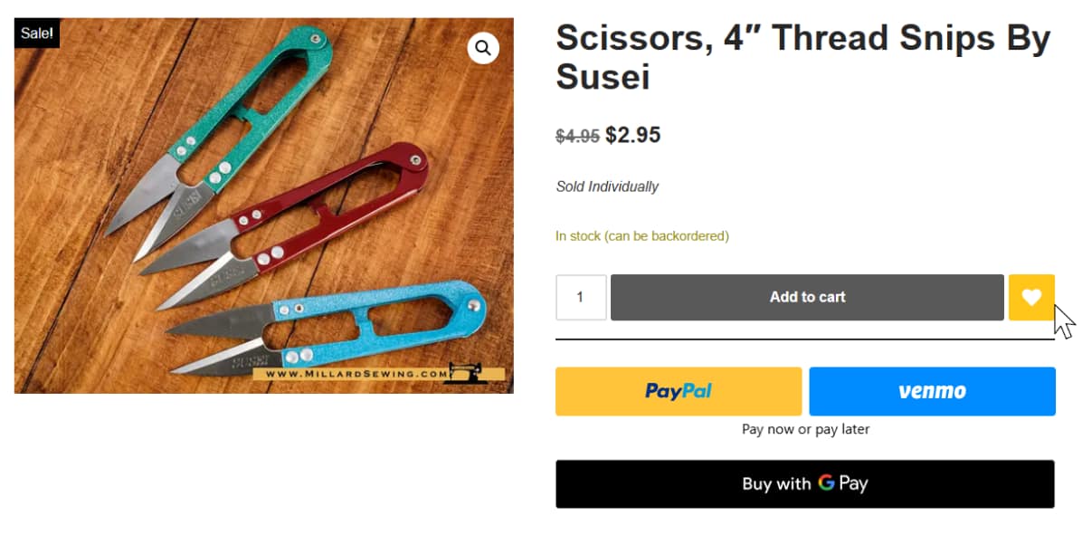 - On the shop page, the heart icon below the product will allow you to send your item to your wish list.