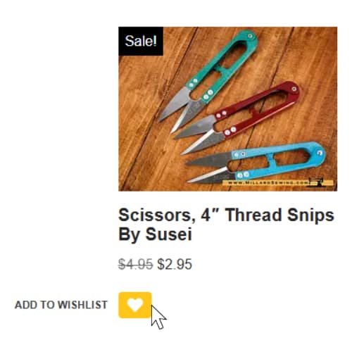 - On the shop page, the heart icon below the product will allow you to send your item to your wish list.