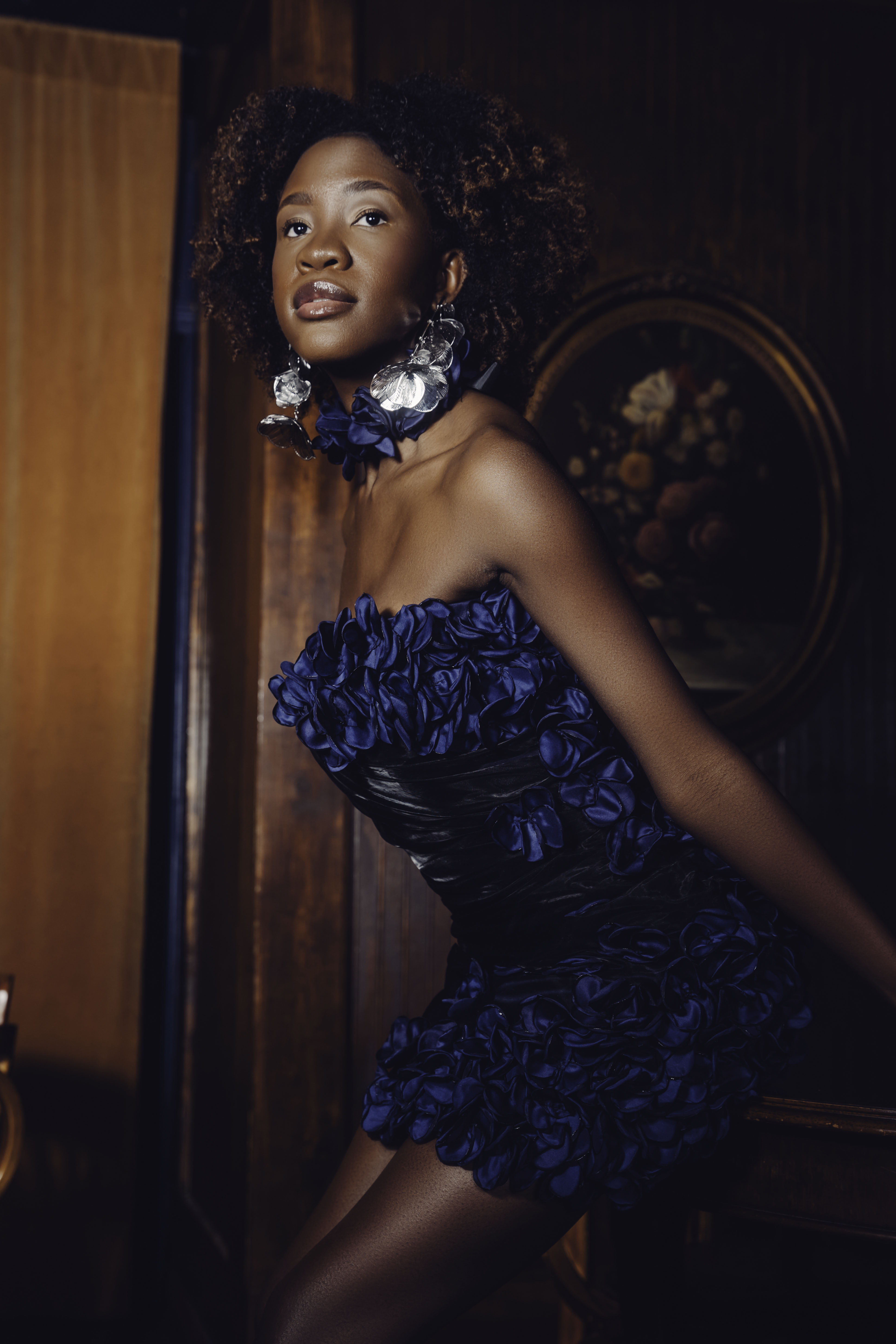 “My creative process is something I thoroughly enjoy doing. I find photos of the subject of matter. For this collection I researched different flowers. Upon finding my inspiration photos, I try to find a few common themes about these photos. Shapes, colors, layers, and so on. I then find a playlist that I want my audience to feel when seeing my collection. Once I find my playlist, I then start to sketch while listening to that specific playlist. When I’m looking at inspiration photos and listening to the songs, I tend to try and put emotion to my designs. I know, sounds kinda funny, but I always design to the playlist that conveys a specific emotion.”