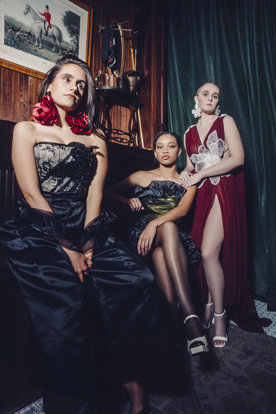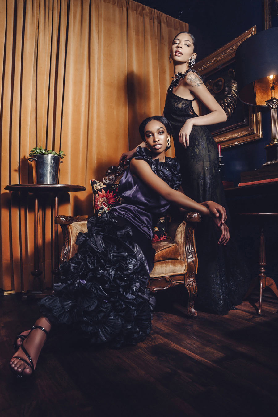 “Personally, aesthetics only recently came about the last 10-15 years. I never fit in. I was that kid that had “scene” clothes (cringe), and the very next day dressed sporty, then the day after might wear heels. I’ve tried so very hard to stay in one area, but I feel as if no one is really just one thing, our experiences allow us to love a plethora of things. So, I design whatever makes me happy and feel alive. I will say I enjoy creating gowns more than anything else.”