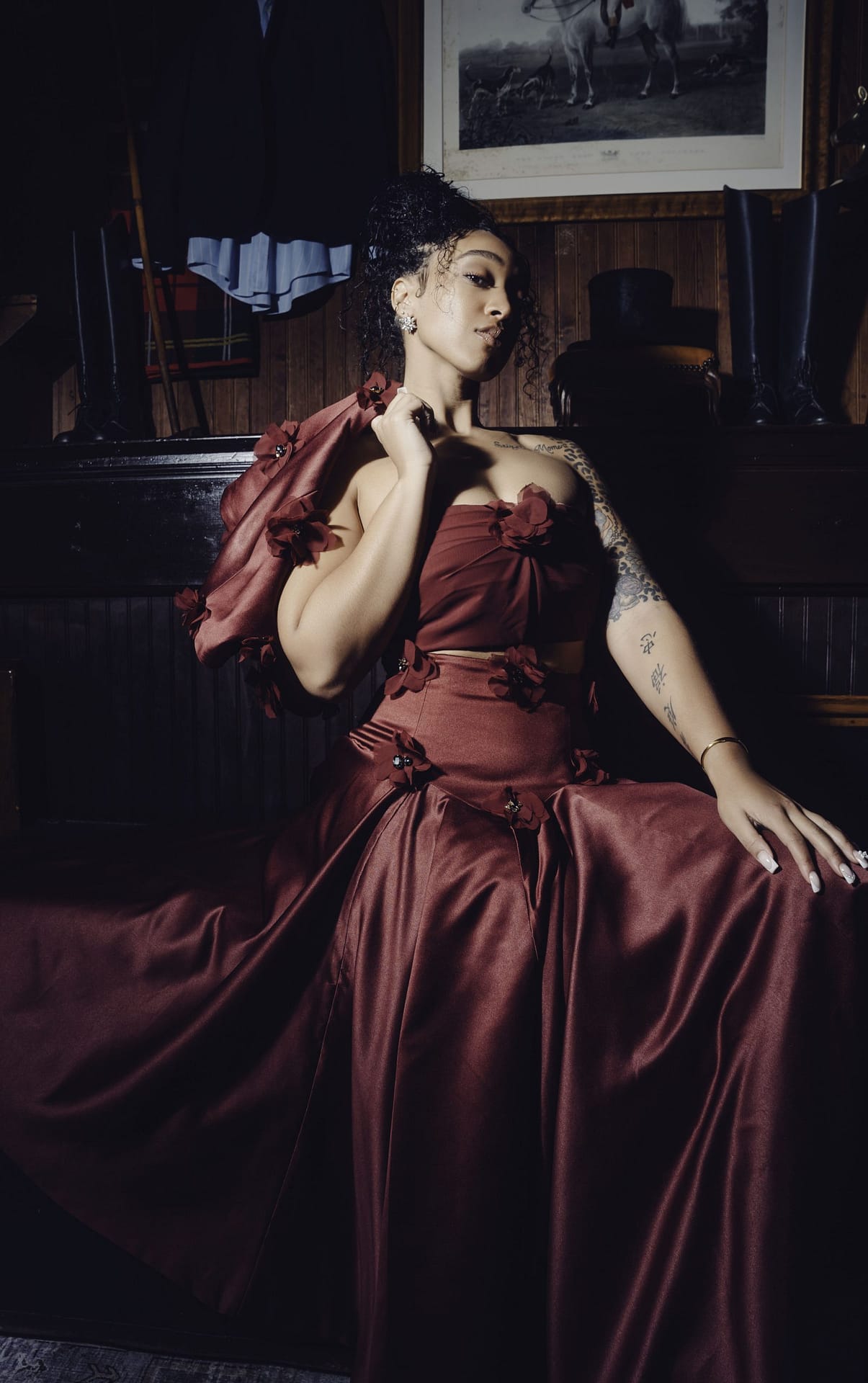 “Personally, aesthetics only recently came about the last 10-15 years. I never fit in. I was that kid that had “scene” clothes (cringe), and the very next day dressed sporty, then the day after might wear heels. I’ve tried so very hard to stay in one area, but I feel as if no one is really just one thing, our experiences allow us to love a plethora of things. So, I design whatever makes me happy and feel alive. I will say I enjoy creating gowns more than anything else.”
