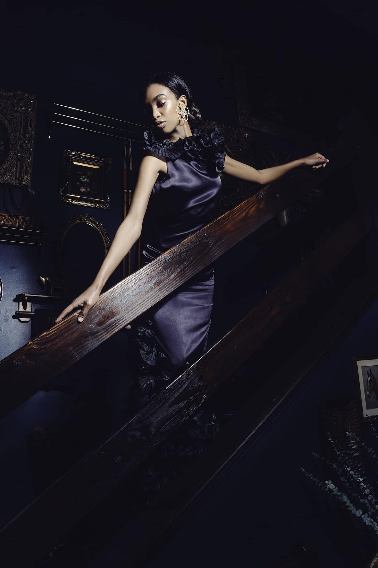 “My creative process is something I thoroughly enjoy doing. I find photos of the subject of matter. For this collection I researched different flowers. Upon finding my inspiration photos, I try to find a few common themes about these photos. Shapes, colors, layers, and so on. I then find a playlist that I want my audience to feel when seeing my collection. Once I find my playlist, I then start to sketch while listening to that specific playlist. When I’m looking at inspiration photos and listening to the songs, I tend to try and put emotion to my designs. I know, sounds kinda funny, but I always design to the playlist that conveys a specific emotion.”