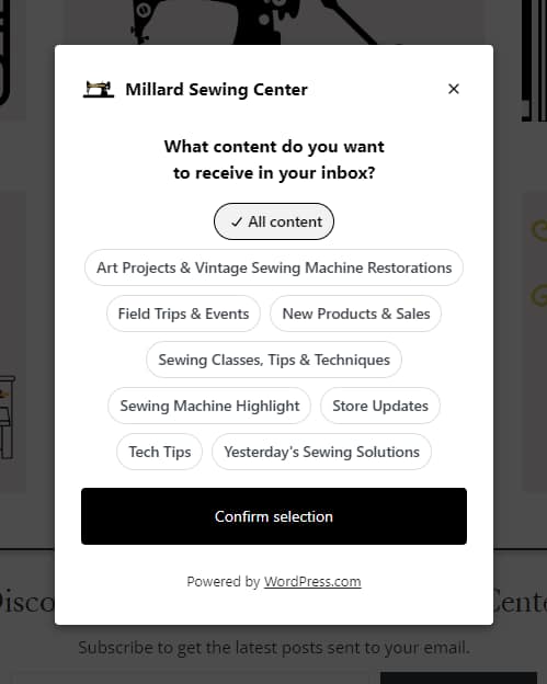 Once you enter your email and click to subscribe, you will see two options. You can subscribe to all of our content. Alternatively, you can choose just the topics that you think will benefit you. I told you this had some nifty features for you! We know we have a variety of customers who will all appreciate slightly different groups of content.