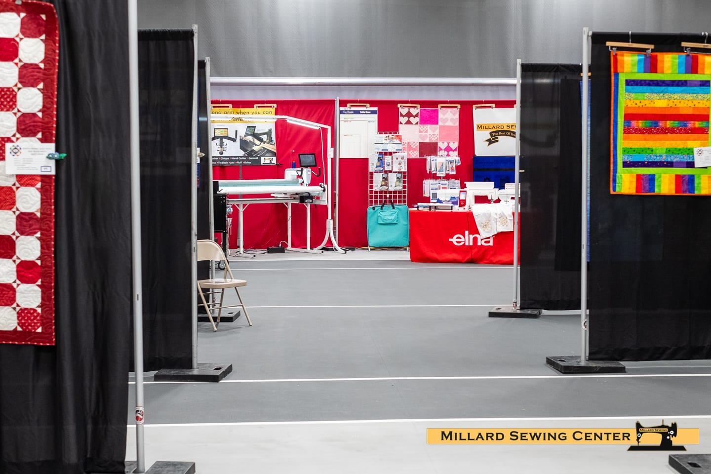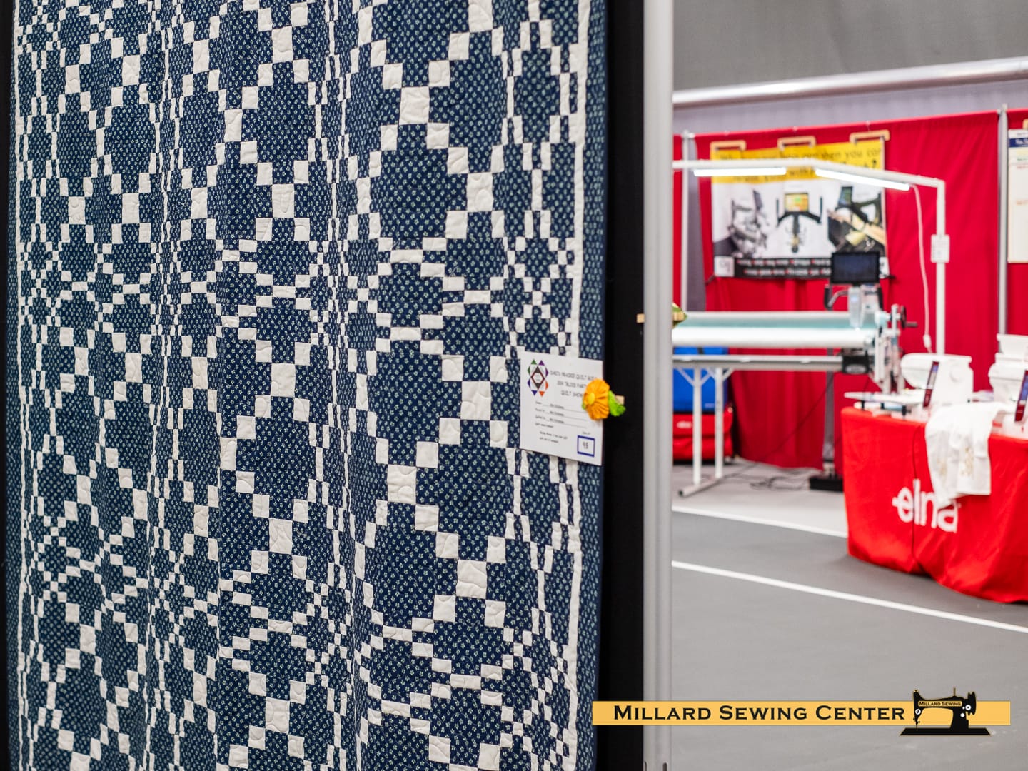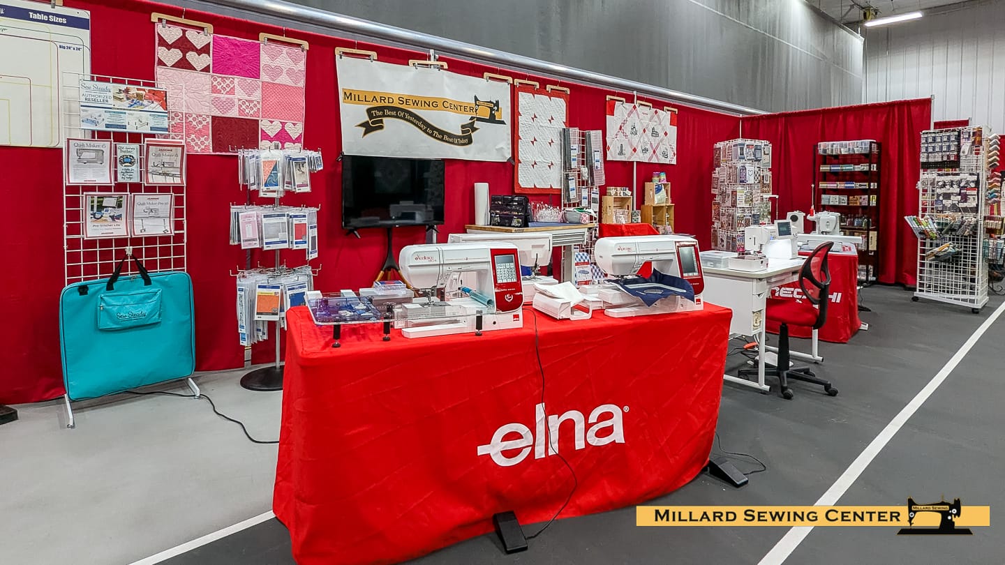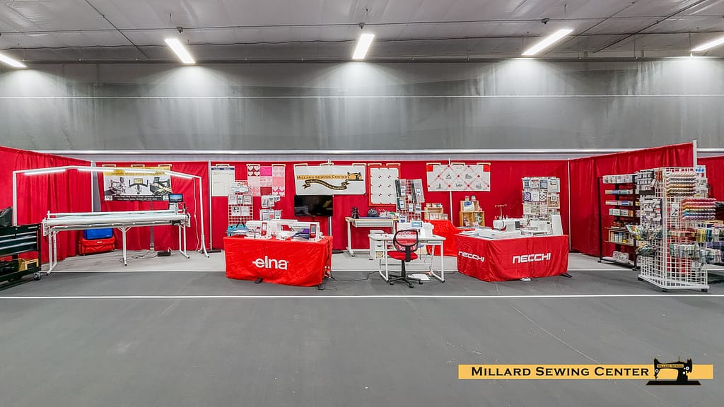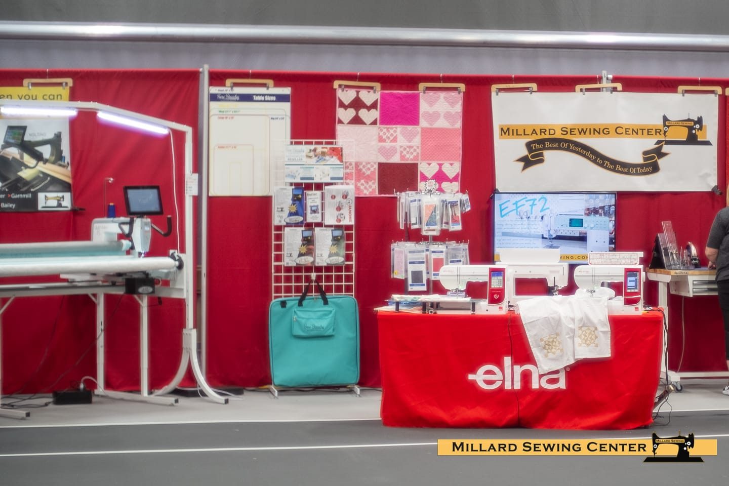 Up front and center in our booth was the Elna eXcellence 792. This machine has a ton of features to offer any quilter. It’s large size is perfect to pass even the largest projects through. Combine that with an included stitch regulator for free motion or or ruler work, and it’s multiple stitch modes including Sashiko and other hand look stitch patterns and it’s enough to keep any quilter happy for a lifetime.