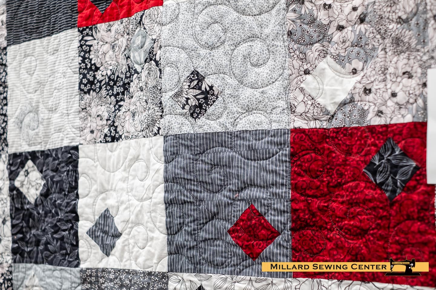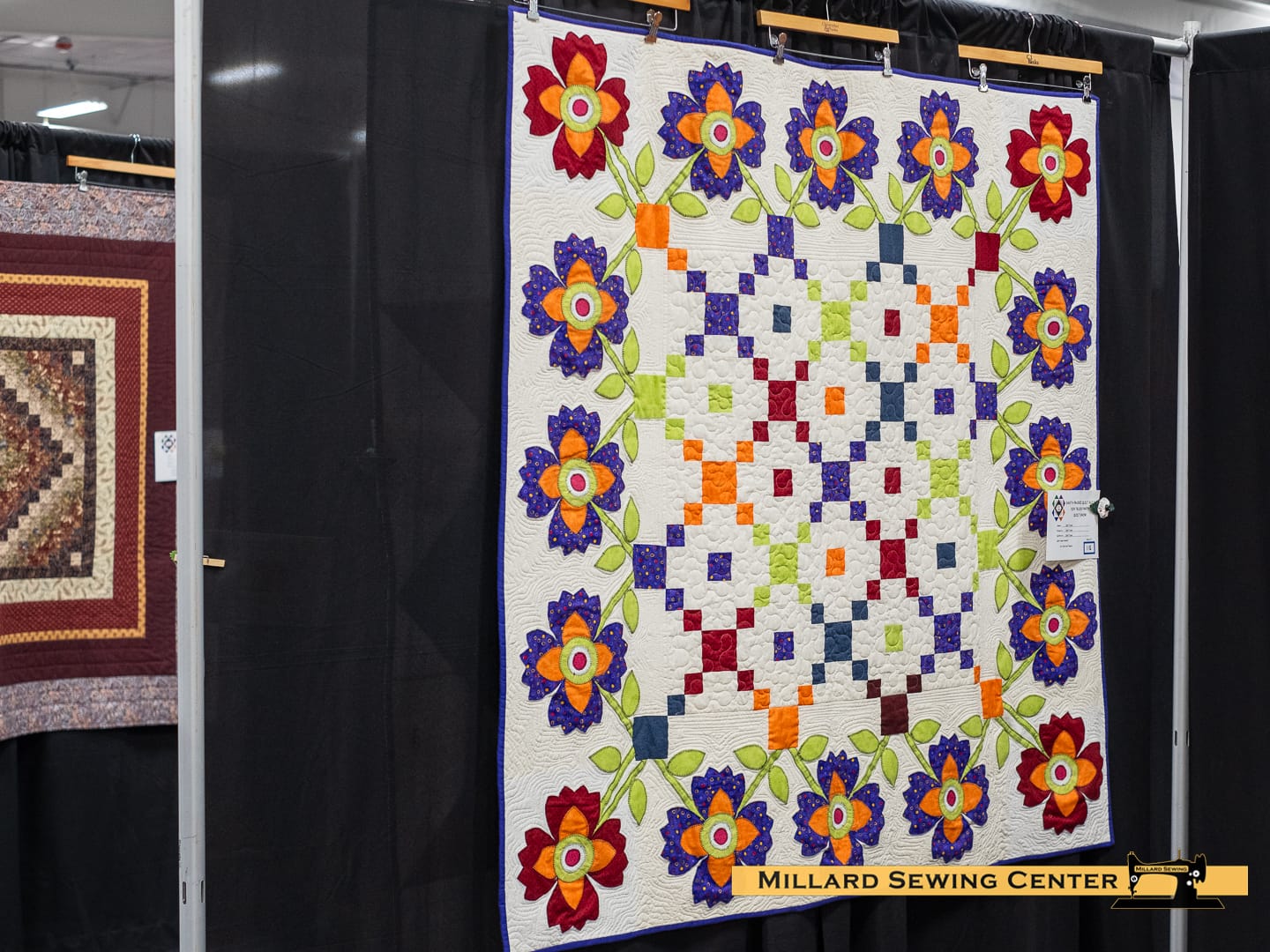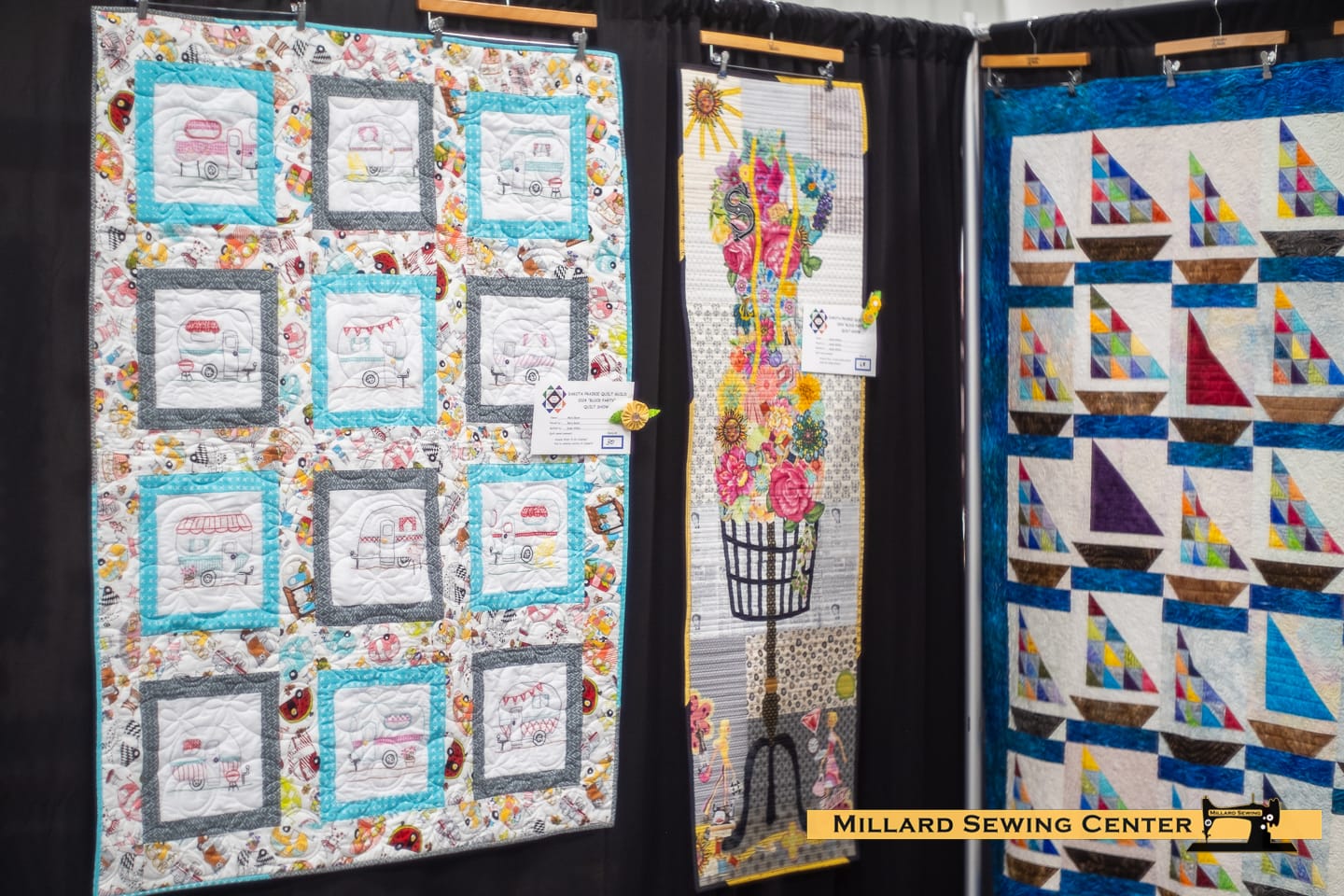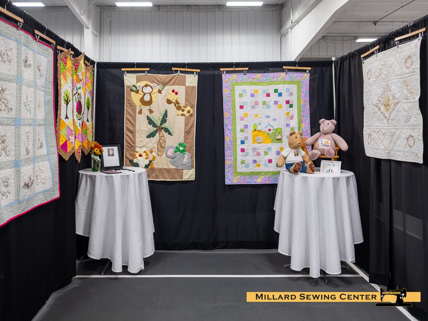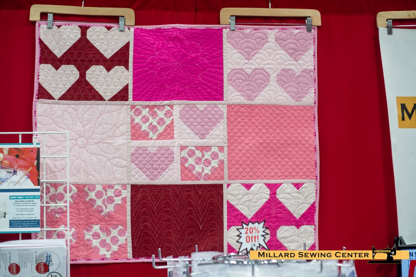 We brought out our Janome QM15 to show that you don’t have to spend a fortune to do your own longarm work. This machine was also our go to for shows because it doesn’t take up a ton of space or need an army to move it and sent it up!