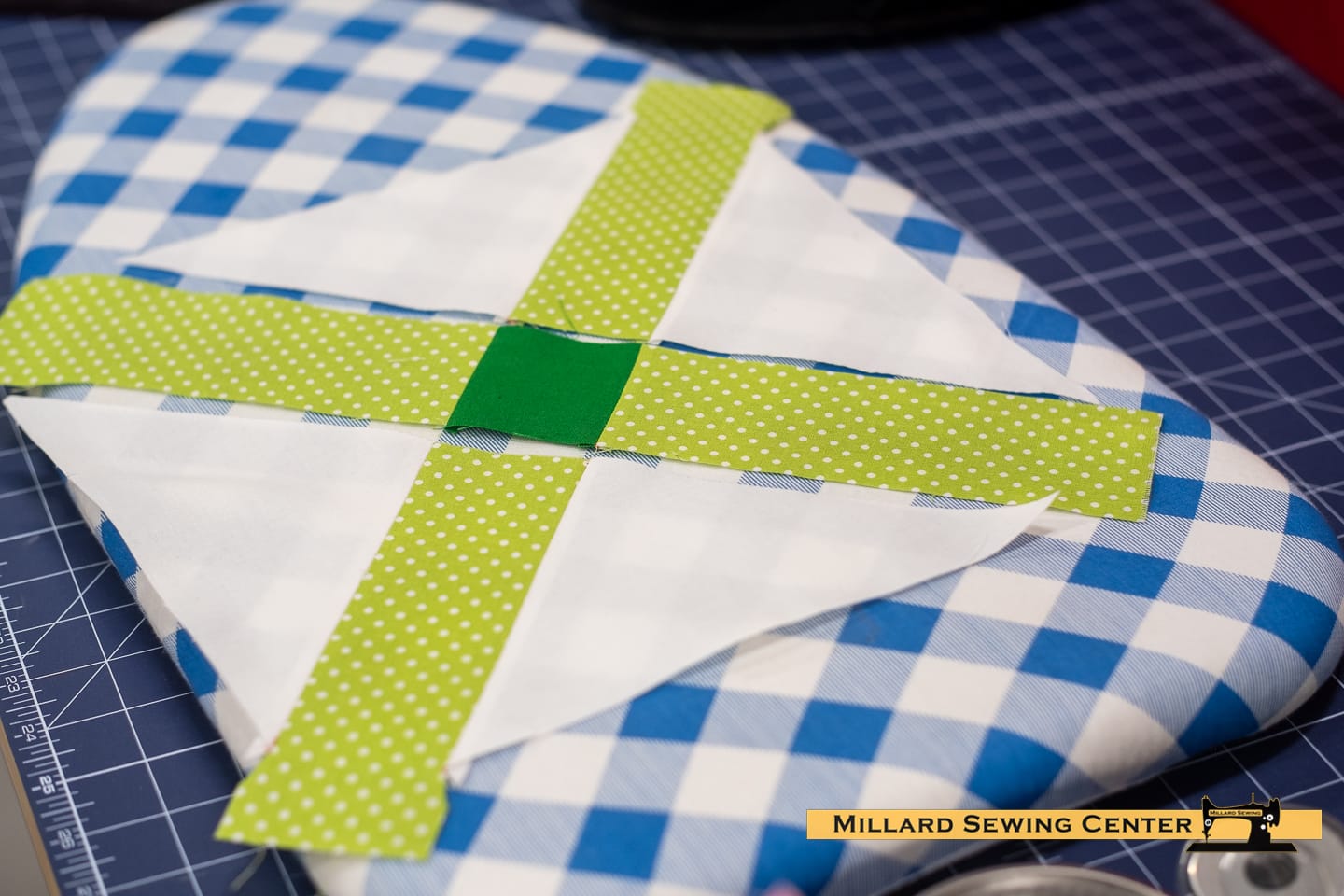 The locking rulers are one of our favorite cheats when working on a quilt. Being able to lock the built in guide to the correct size is the perfect way to make sure all of your pieces are the exact same size for every cut. We don’t leave home without or demo pieces or a few to share with our customers.