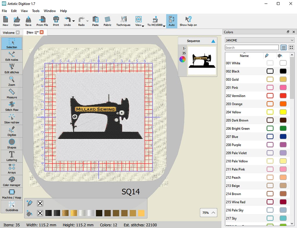 While auto-digitizing simplifies the process, Janome Artistic Digitizer also offers a wealth of manual editing tools for those who want to fine-tune their designs. You can adjust stitch types, modify densities, add lettering, and manipulate elements with precision. However, for those looking for a quick and easy start, the auto-digitizing feature is an invaluable asset.