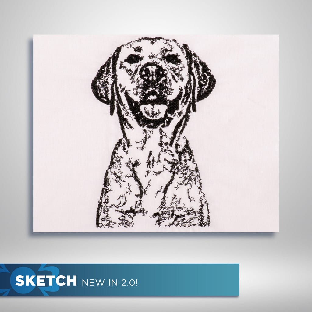Images can be converted to Cross-Stitch, Photo-Stitch, PaintStitch, or Sketch. Sketch, which is new with AD v2.0, creates a charcoal-like outline of your image that can be embroidered onto t-shirts and other flexible material