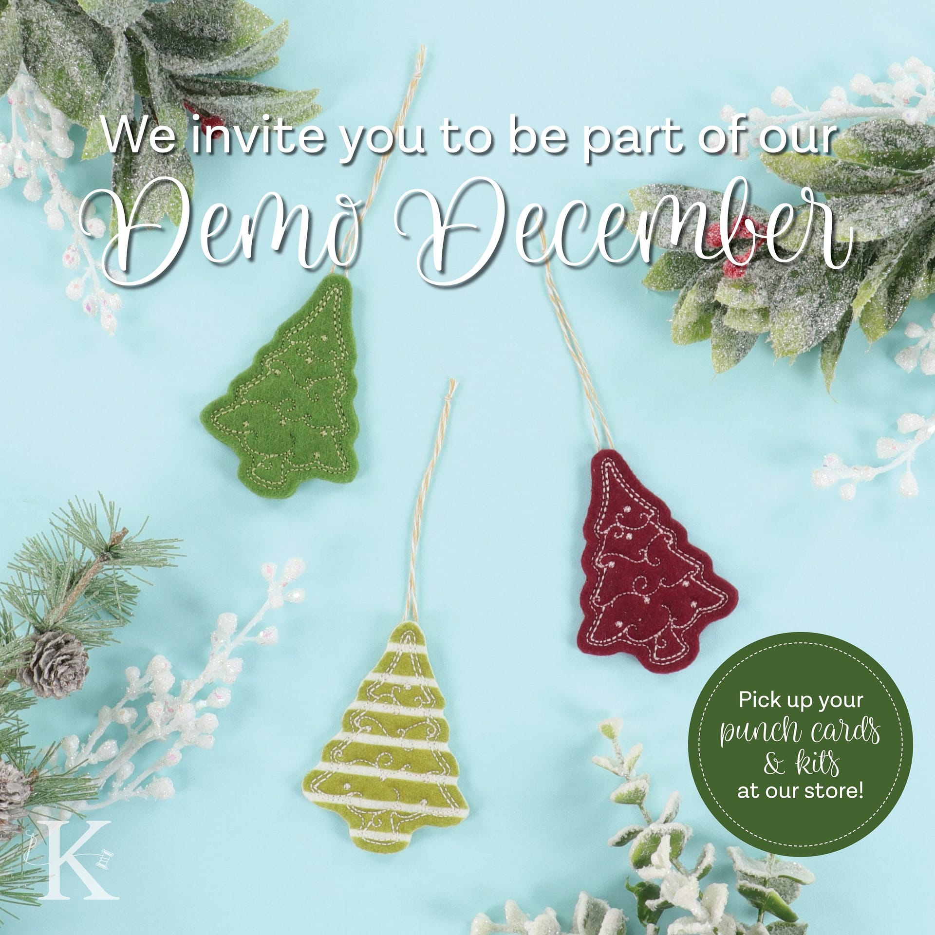 We believe in rewarding dedication! When you attend your first Kimberbell Demo in December, you’ll receive an exclusive Demo December Punch Card.