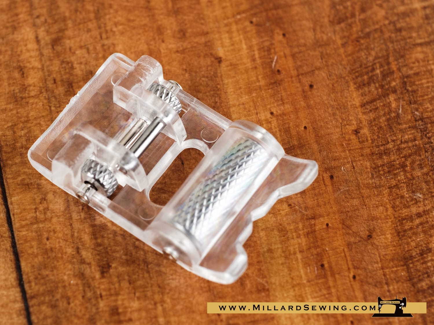 Materials like leather or suede and some synthetic fabrics are sometimes difficult to work with.The textured roller on this foot ensures a very good grip on the sewn materials and less friction between the foot and the feed dog.