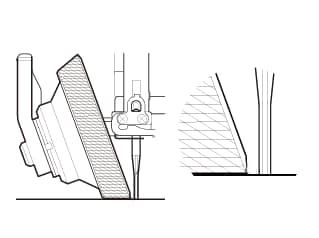 - Lower the presser bar. Adjust the height of the foot by turning the round nut or sliding the foot up/down until the bottom of the foot barely touches the top of the quilt layers. Tighten the foot in position (slide type only).