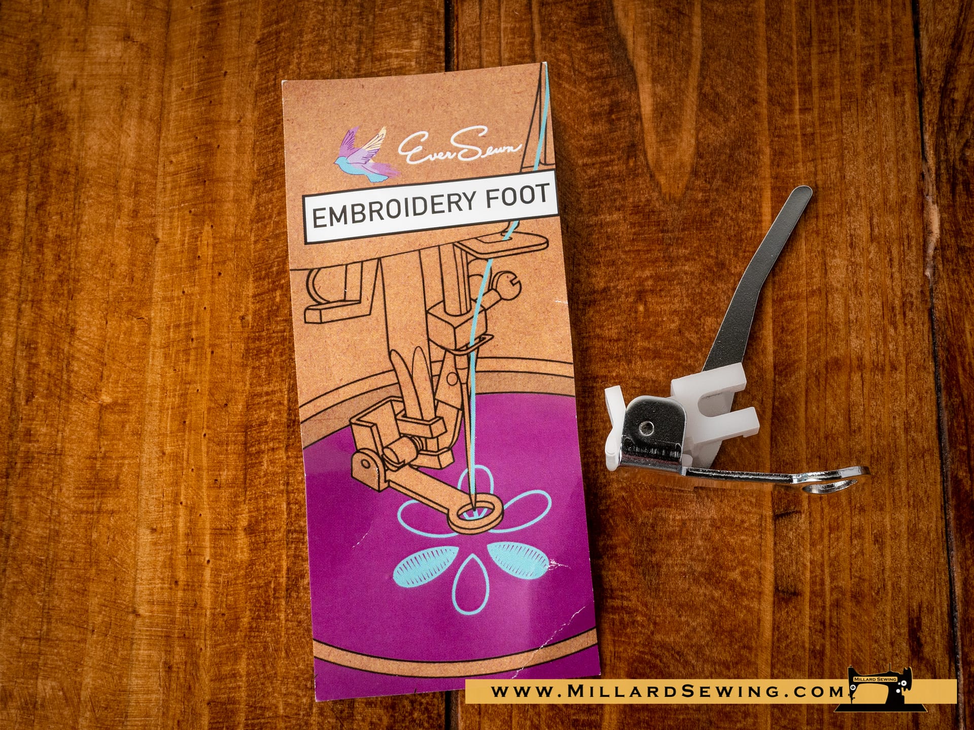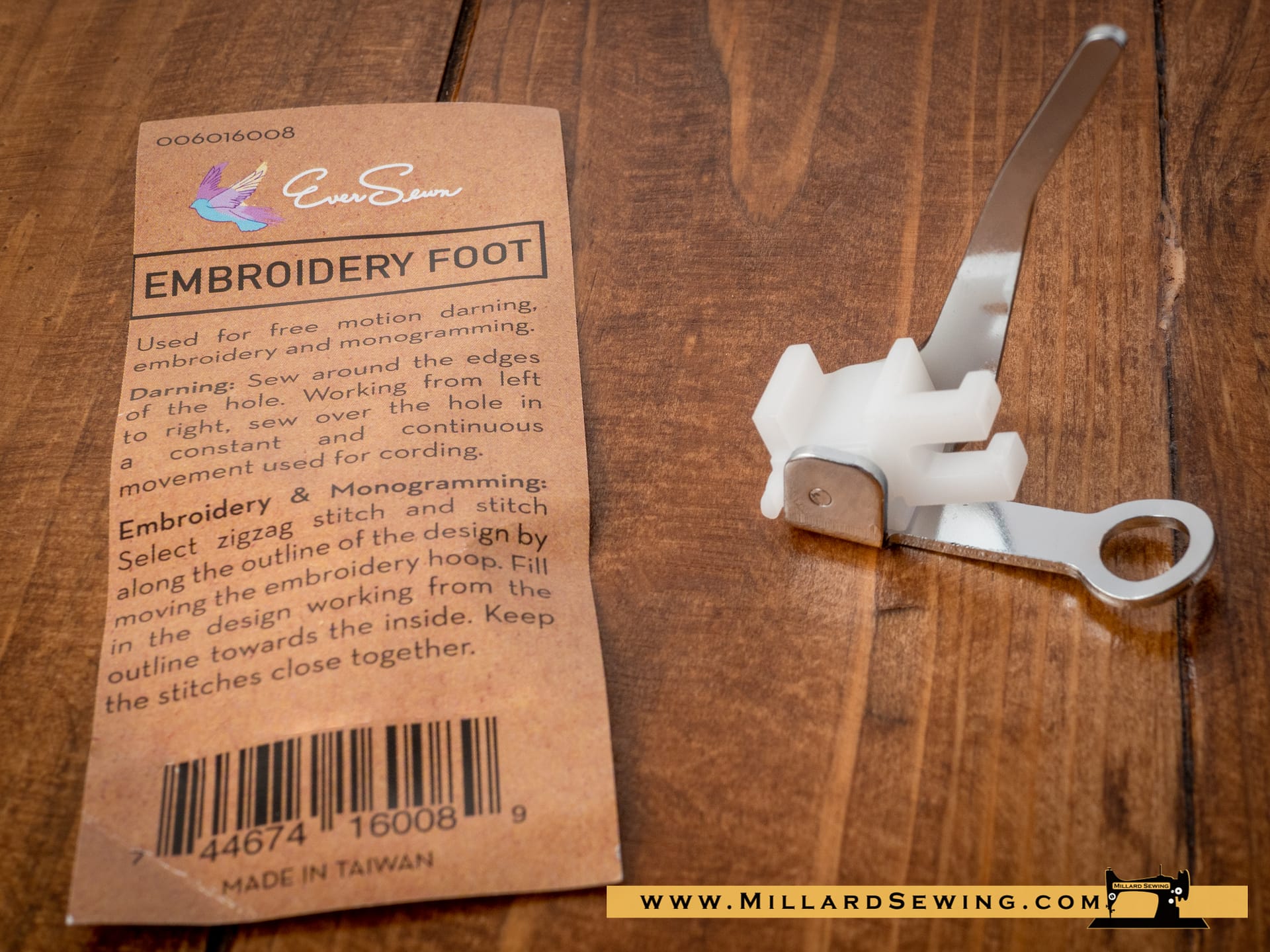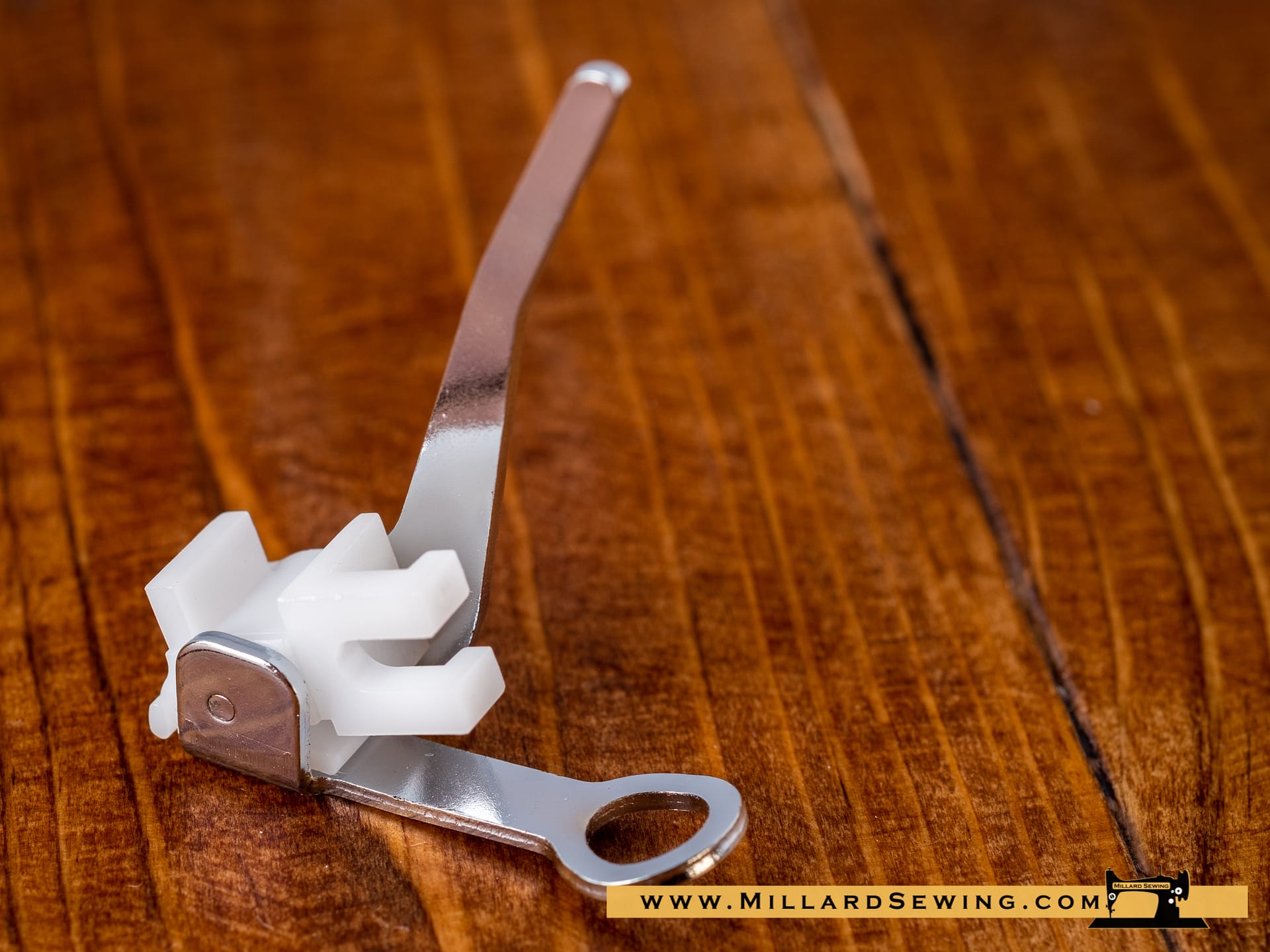 Used for free motion quilting, embroidery, darning, etc.ย This foot applies pressure as the needle comes towards the fabric and releases the pressure as the needle retracts.