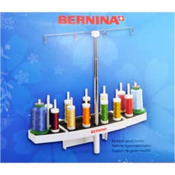 For special sewing, embroidery, and quilting projects. The Multiple spool holder can be mounted almost effortlessly on a wide range of sewing machines, and can also be switched between two machines with the greatest of ease. The holder has room for up to 15 spools, enabling quick access to threads of different colors. If need be, removing individual spool pins from the multiple spool holder creates room for larger spools as well as thread cones, enabling you to execute your sewing, embroidery and quilting projects more efficiently. Quick access to a wide range of spools of different colors is a real time saver when working on multicolored embroidery designs. Also, the multiple spool holder’s telescopic thread guide can be adjusted upwards: the thread has a longer path to the needle, allowing difficult threads like metallics to untangle and flow freely before they reach the start of the sewing process.