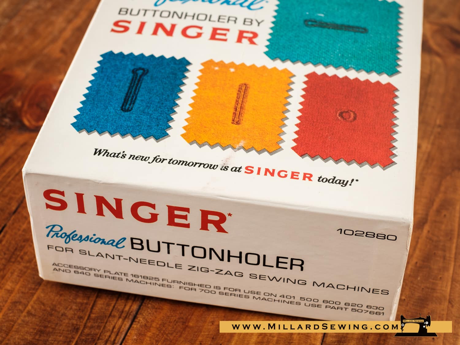 The Singer Model 102880 buttonholer is designed for use on Slant Needle machines with Zig Zag.ย It includes 20 templates: straight buttonholes, eyelet end buttonholes, eyelets, and bound buttonholes. Sizes range from 1/2″ to 1 1/2″.ย Original buttonholers have been serviced and tested.