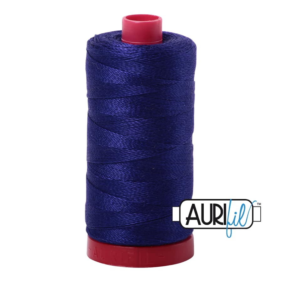 Aurifilโs 100% Cotton 12wt/2ply thread comes in all 270 of our Cotton colours and is wound on a red spool. It is the heaviest weight thread that we offer and is perfect for hand applique, hand embroidery, hand quilting, cross stitch, embellishment, handmade lace, machine applique, blanket stitch, machine embroidery (especially for designs that use a longer stitch length), machine art quilting, Sashiko, redwork, lower looper serging, and longarm quilting.