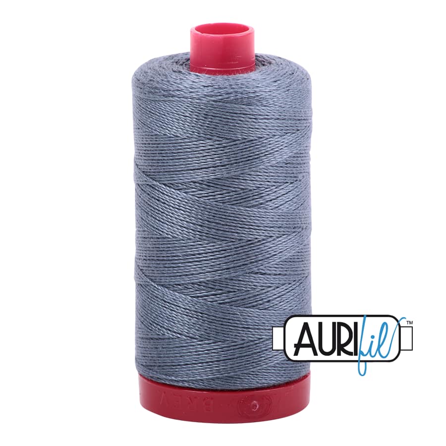 Aurifilโs 100% Cotton 12wt/2ply thread comes in all 270 of our Cotton colours and is wound on a red spool. It is the heaviest weight thread that we offer and is perfect for hand applique, hand embroidery, hand quilting, cross stitch, embellishment, handmade lace, machine applique, blanket stitch, machine embroidery (especially for designs that use a longer stitch length), machine art quilting, Sashiko, redwork, lower looper serging, and longarm quilting.