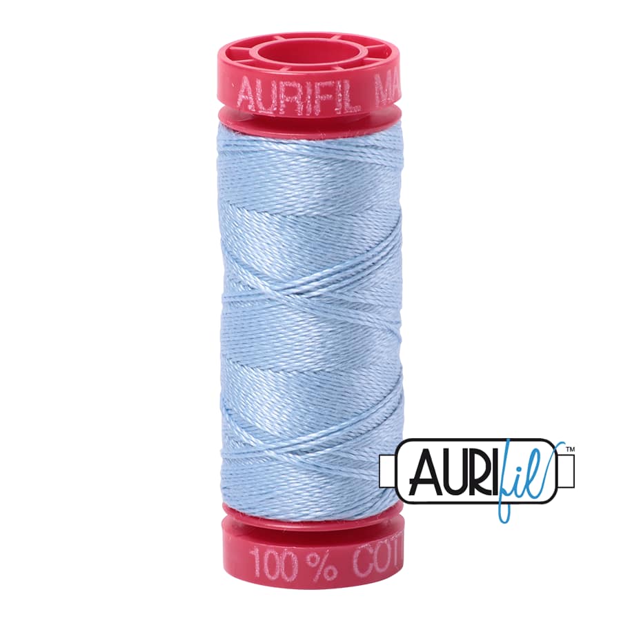 Aurifil’s 100% Cotton 12wt/2ply thread comes in all 270 of our Cotton colours and is wound on a red spool. It is the heaviest weight thread that we offer and is perfect for hand applique, hand embroidery, hand quilting, cross stitch, embellishment, handmade lace, machine applique, blanket stitch, machine embroidery (especially for designs that use a longer stitch length), machine art quilting, Sashiko, redwork, lower looper serging, and longarm quilting.