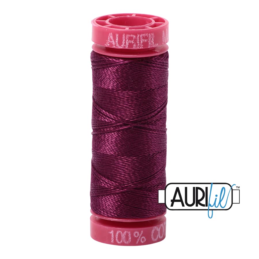 Aurifil’s 100% Cotton 12wt/2ply thread comes in all 270 of our Cotton colours and is wound on a red spool. It is the heaviest weight thread that we offer and is perfect for hand applique, hand embroidery, hand quilting, cross stitch, embellishment, handmade lace, machine applique, blanket stitch, machine embroidery (especially for designs that use a longer stitch length), machine art quilting, Sashiko, redwork, lower looper serging, and longarm quilting.