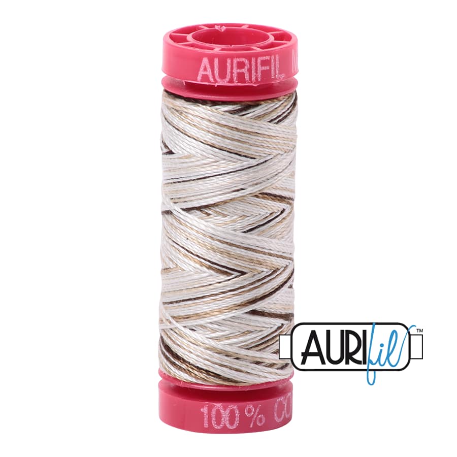 Aurifilโs 100% Cotton 12wt/2ply thread comes in all 270 of our Cotton colours and is wound on a red spool. It is the heaviest weight thread that we offer and is perfect for hand applique, hand embroidery, hand quilting, cross stitch, embellishment, handmade lace, machine applique, blanket stitch, machine embroidery (especially for designs that use a longer stitch length), machine art quilting, Sashiko, redwork, lower looper serging, and longarm quilting.