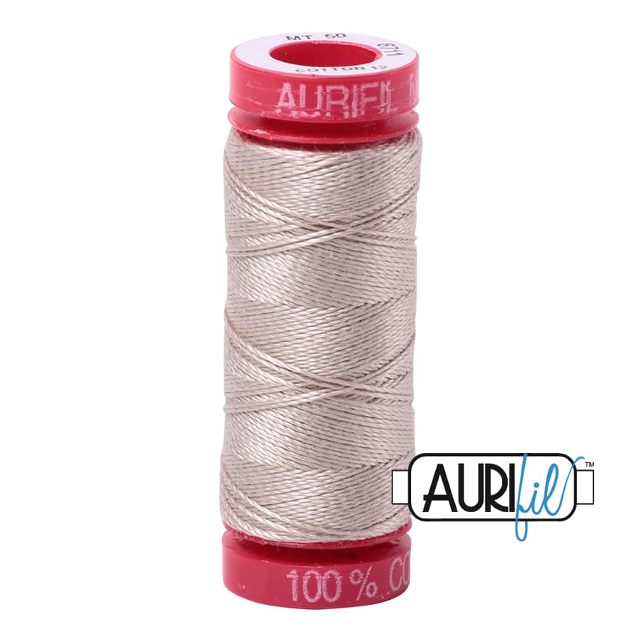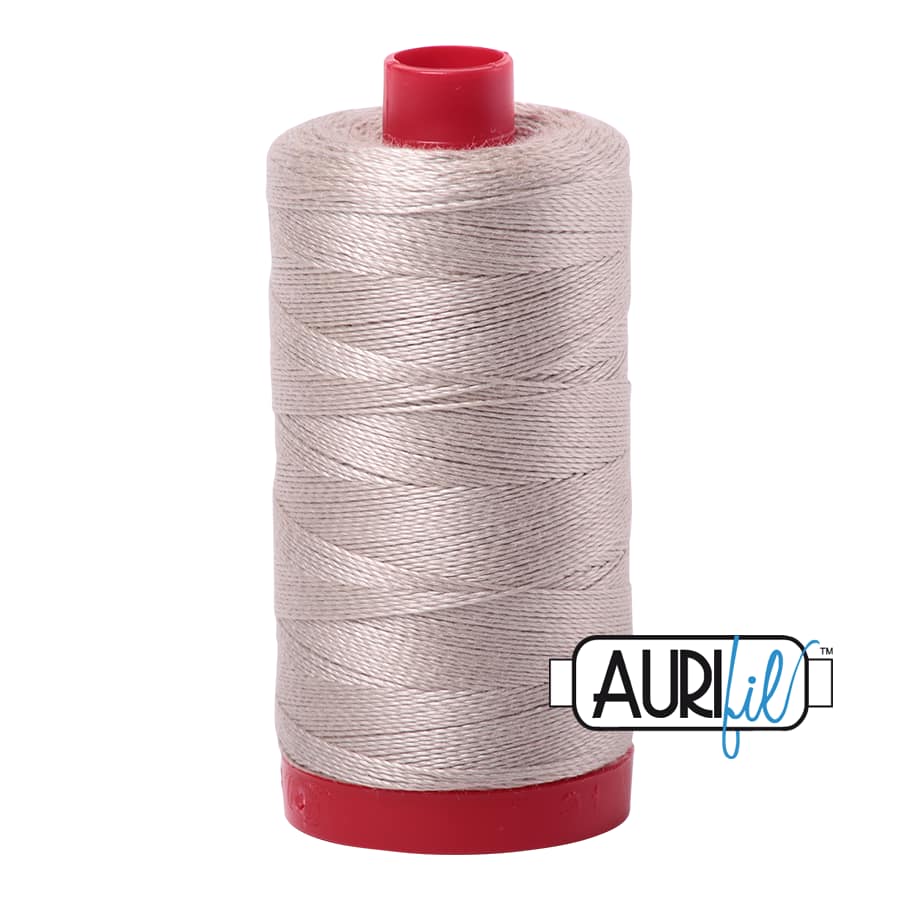 Aurifilโ€™s 100% Cotton 12wt/2ply thread comes in all 270 of our Cotton colours and is wound on a red spool. It is the heaviest weight thread that we offer and is perfect for hand applique, hand embroidery, hand quilting, cross stitch, embellishment, handmade lace, machine applique, blanket stitch, machine embroidery (especially for designs that use a longer stitch length), machine art quilting, Sashiko, redwork, lower looper serging, and longarm quilting.