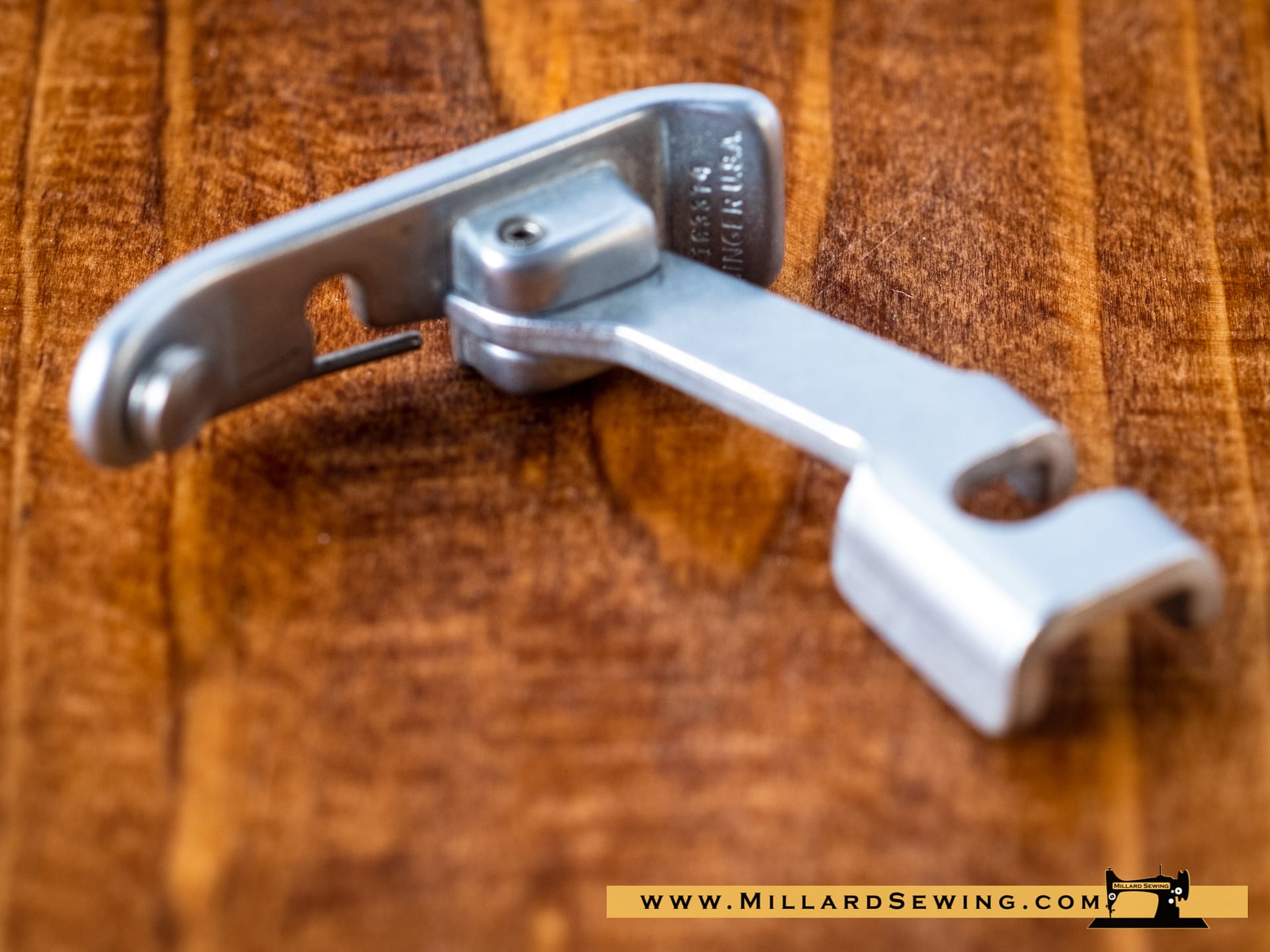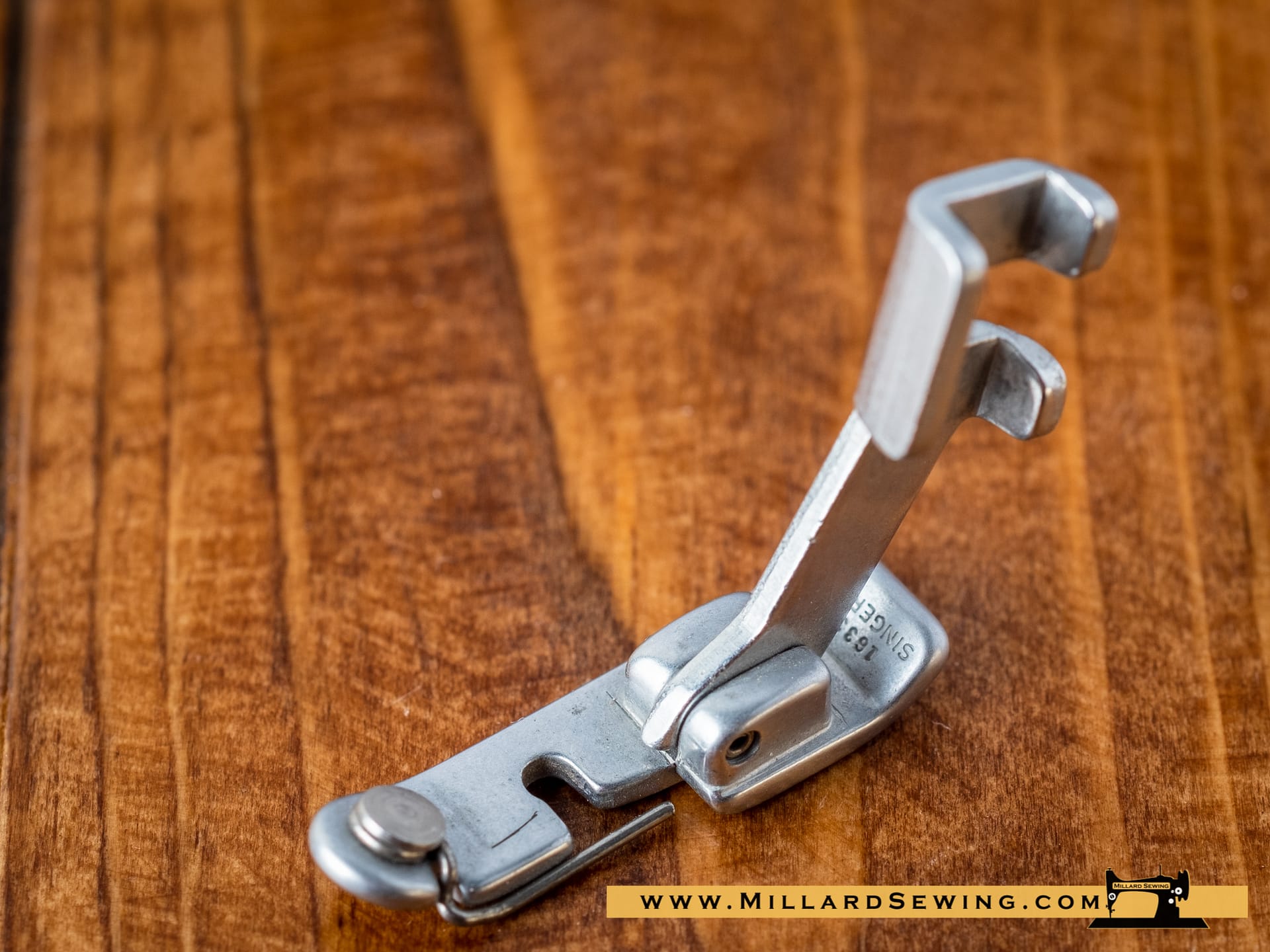 Singer Style Slant Needle Snap On Overedge Foot.ย Wraps thread over the edge of the fabric to prevent fraying similar to a serger.