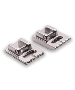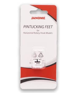 This set combines the Deep Groove Pintuck foot and the 7-Groove Pintuck foot. Using twin needles, sew evenly spaced pintucks on light to medium weight fabrics. Perfect for corded pintucks using Pintuck Cord Guide. Using twin needles, sew evenly spaced pintucks on soft, lightweight fabrics.