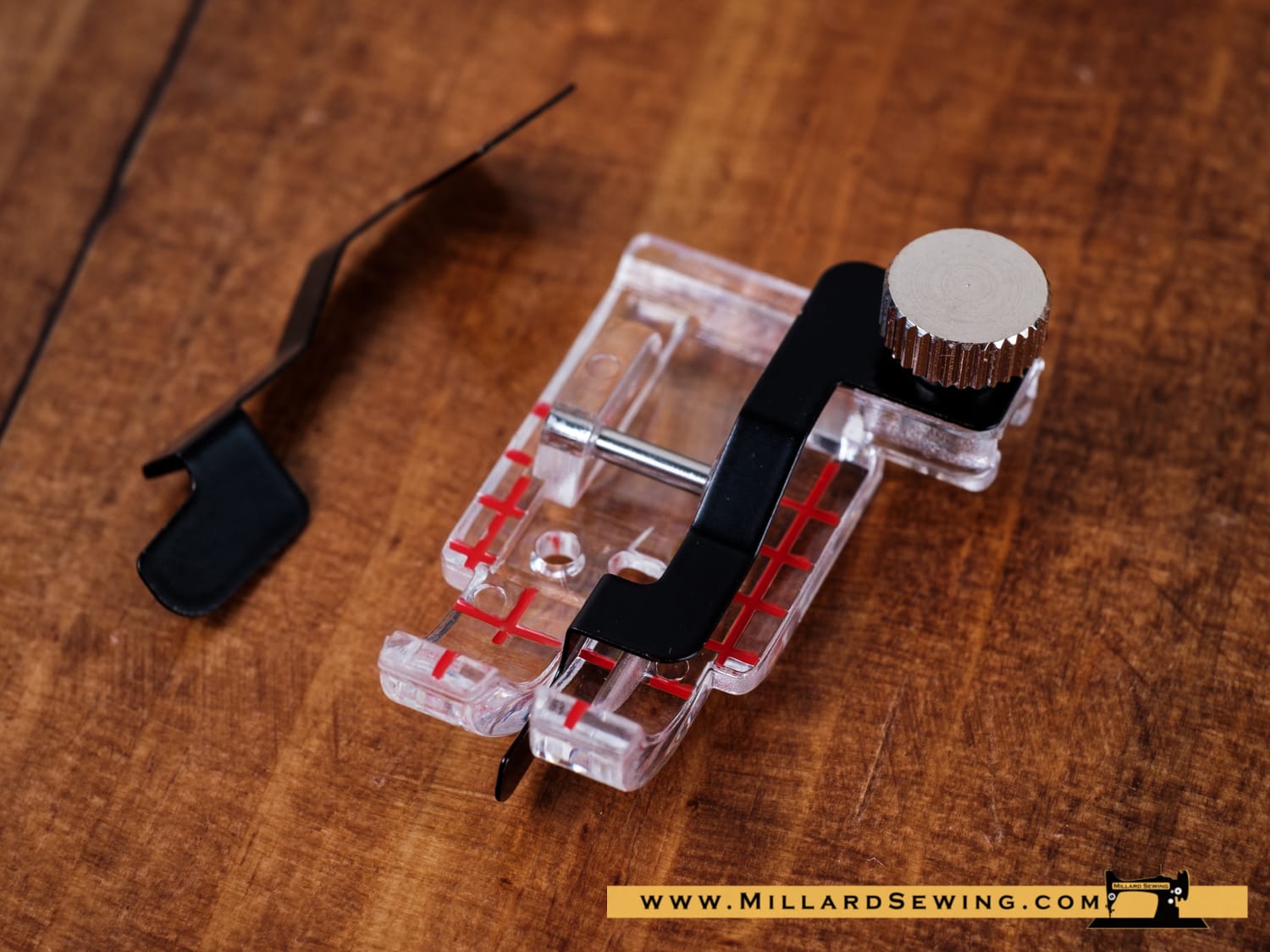 Attach and remove the guides as needed to suit your task. three feet are included: 1/4 inch foot, ditch quilting and clear foot. Markings indicate 1/8 inch and 1/4 inch from the center needle drop position for both 1/8 and 1/4-inch seams. The oval-shaped needle hole allows needle adjustment for scant 1/4-inch piecing.
