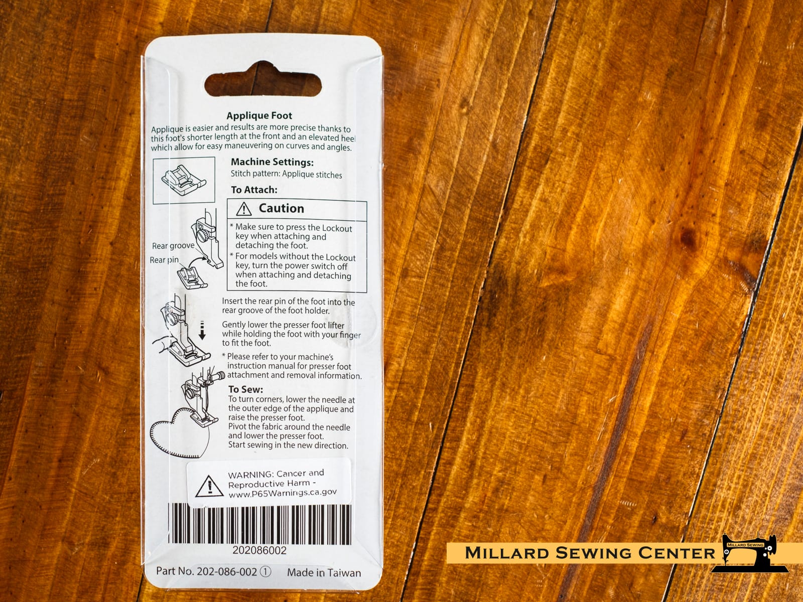 This presser foot is shorter than most other feet to facilitate handling of curves and corners when sewing applique pieces. Made of clear material for easier viewing as you sew.