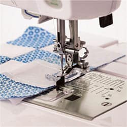 The Clear View Foot gives you a better view of what you are sewing. It is especially useful for decorative topstitching and can also be used with other attachments such as the Hemming Guide to match up the end of a hem seam with it’s start for a beautiful finish. Markings on the front edge of the foot correspond with needles for perfect stitch alignment. Attach and remove the guides as needed to suit your task. Three feet are included: 1/4 inch foot, ditch quilting and clear foot. Markings indicate 1/8 inch and 1/4 inch from the center needle drop position for both 1/8 and 1/4-inch seams. The oval-shaped needle hole allows needle adjustment for scant 1/4-inch piecing.
