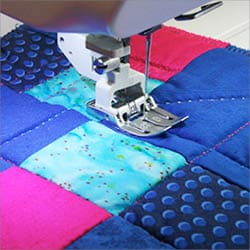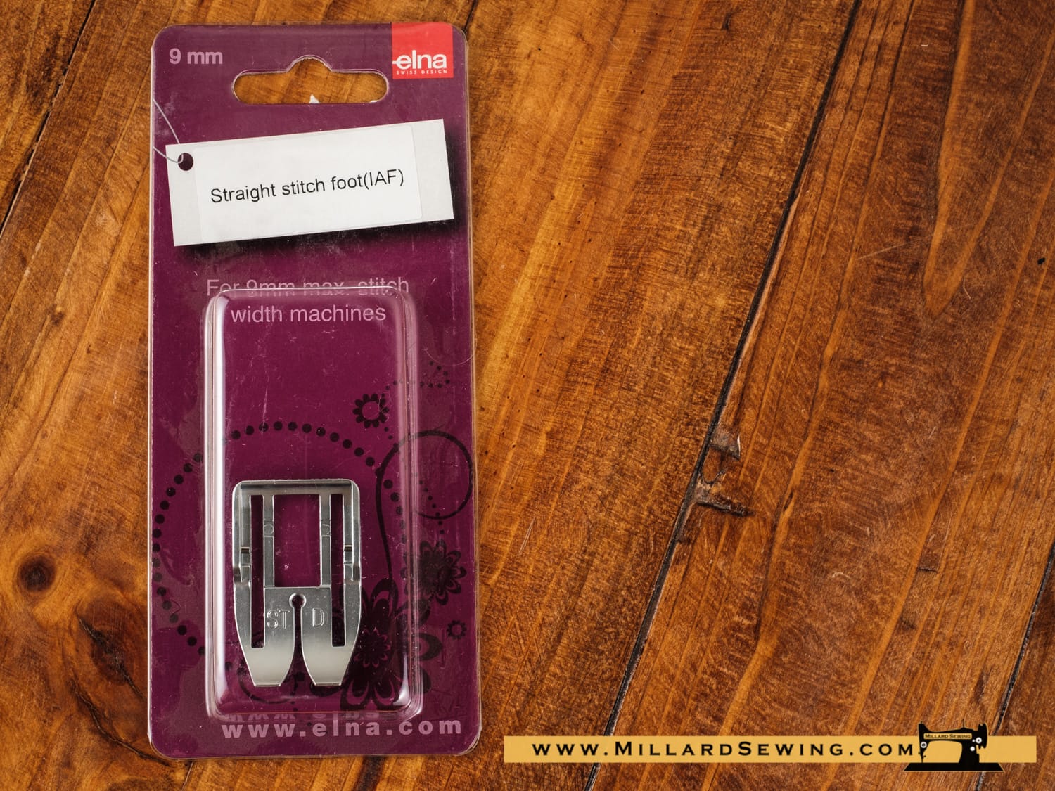This foot combines perfect upper feeding with a small needle hole foot to hold the fabric firmly and create beautiful straight stitches. This foot helps the fabric from buckling and being pinched. The straight stitch foot is flat on the underside to provide even pressure against the feed dogs and it has a rounded needle hole which offers the benefit of more support around the needle to prevent skipped stitches and puckering.