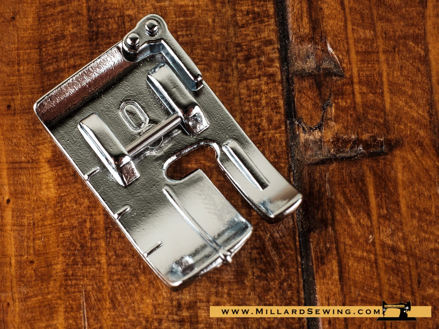 Sewn from the centered needle position, the edge of the foot provides a perfect 1/4’’ seam guide for all kinds of uses with a significant time saving. The flange guide on the foot keeps your fabric perfectly straight.