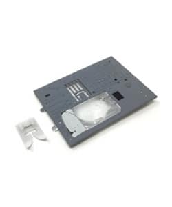 The Ultraglide Needle Plate uses the same non-stick technology included in the very popular Ultraglide Foot. Now, you can glide easily over even the stickiest fabrics like leathers, vinyl, and oilcloth with a slick surface on both the foot and your needle plate!