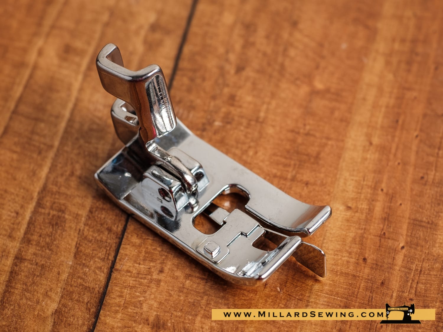 This foot mimics a serged/overlock effect in that it prevents raw edges from fraying by wrapping thread around the edges.