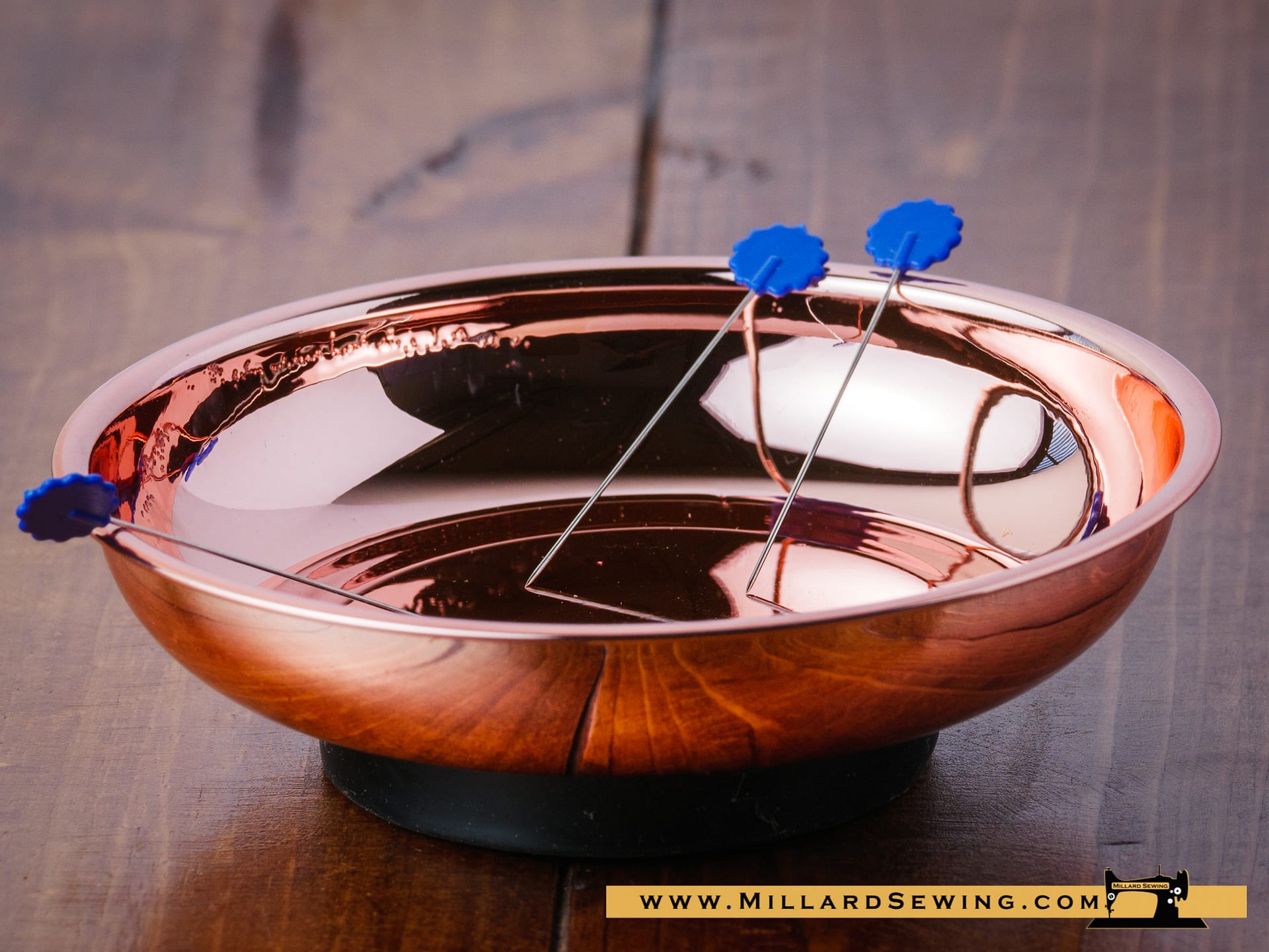With equal parts style and usefulness this rose gold pin dish is the perfect place to drop your pins as you sew and is equally easy to retrieve them from for the next project.ย As an added bonus it works well to quickly retrieve dropped or spilled pins and for holding parts and screws while you are doing your scheduled maintenance.