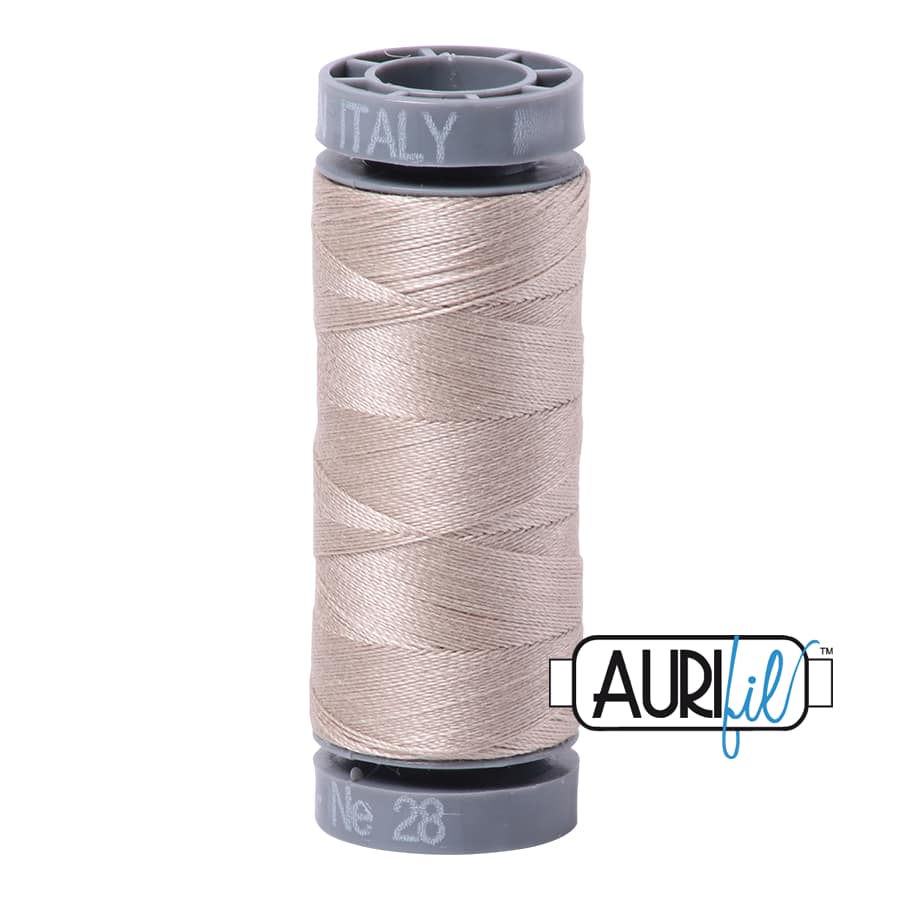 Aurifilโ€™s 100% Cotton 28wt/2ply thread comes in all 270 of our Cotton colors and is wound on a grey spool. It is the second heaviest weight thread that we offer and is perfect for double strand cross stitch, blanket stitch, hand applique, hand piecing, hand quilting, bobbin and machine lace, machine quilting, longarm quilting, machine embroidery and lower looper serging.
