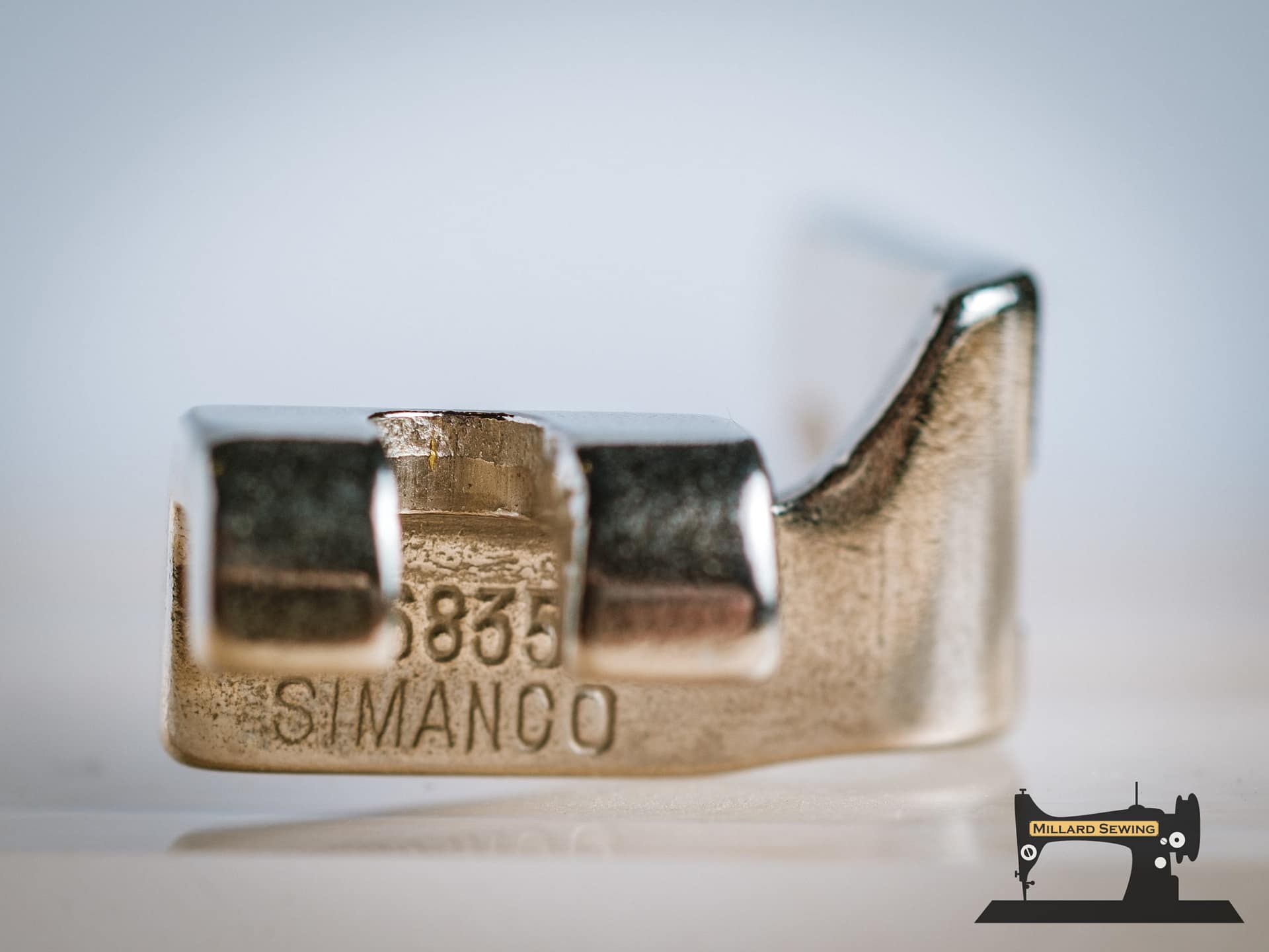 Fits in place of standard foot to form and stitch perfectly turned hems without tacking or ironing. Form a double fold at the edge of the fabric and crease it for about 2″. Place the creased hem under the foot and stitch through the fold. Hold the thread ends at the back and the single fold in front of the hemmer and lift the fold into the hemmer scroll. Whilst sewing, guide the fabric edge into the mouth of the scroll with the right hand. Simanco USA.