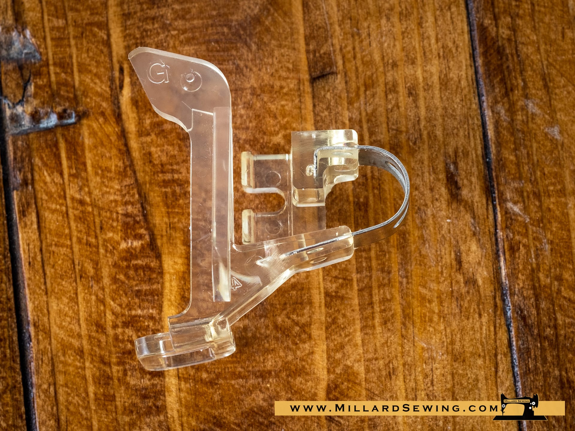 Used for free motion quilting. This foot applies pressure as the needle comes towards the fabric and releases the pressure as the needle retracts.