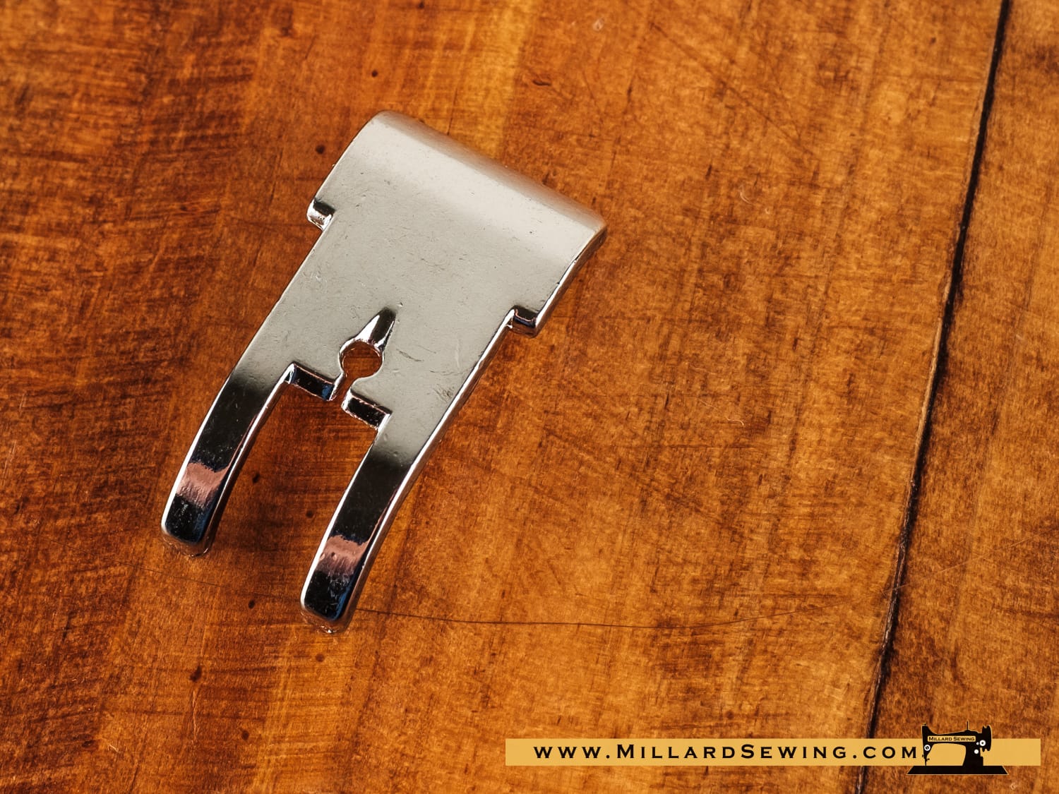 The needle hole in the foot is oval shaped allowing you to adjust the needle position.