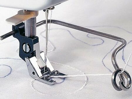 Use the Gimping Foot to create a dimensional satin stitch technique. Gimp thread is guided by the foot as the stitch is sewn over it.