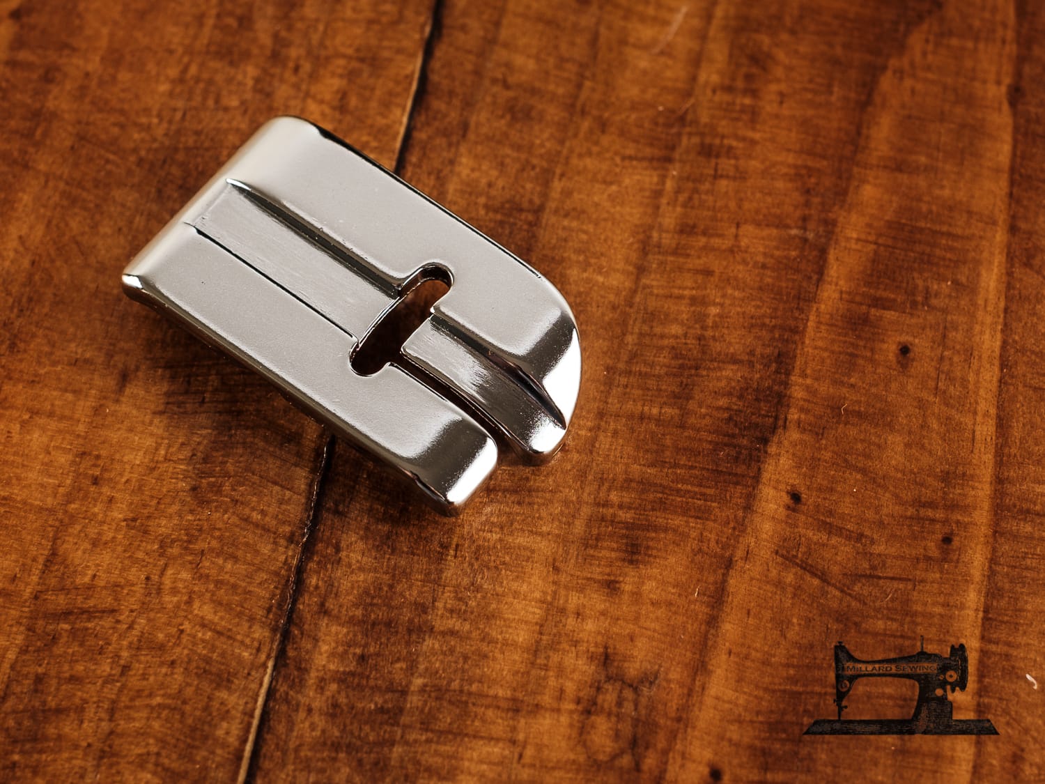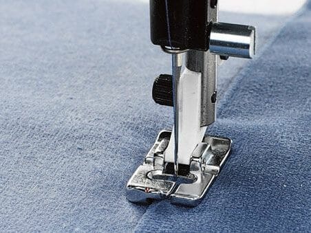 - Use the inner right side of the presser foot to guide the fabric and together with the underside of the foot which is designed to glide along the folded edge, you will get a beautiful top stitch on your project.
