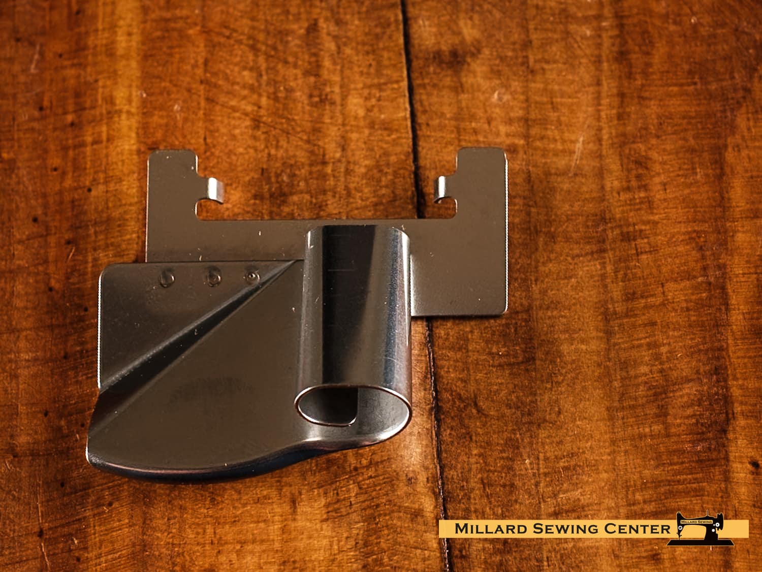- Place fabric into the scroll/guide of the 10 mm Hemmer, rolling it up to the needle.