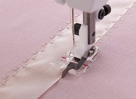 The Clear B Edge Joining Foot guides decorative stitching along an edge perfectly. The tunnel on the bottom of the foot allows stitches to form perfectly and feed flawlessly. The flange along the edge of the foot keeps the distance between the edge of the fabric and the stitching consistent. Anytime your Sewing Advisor or Graphic Display recommends the โBโ foot, use the Clear B Edge Joining Foot when sewing along an edge.