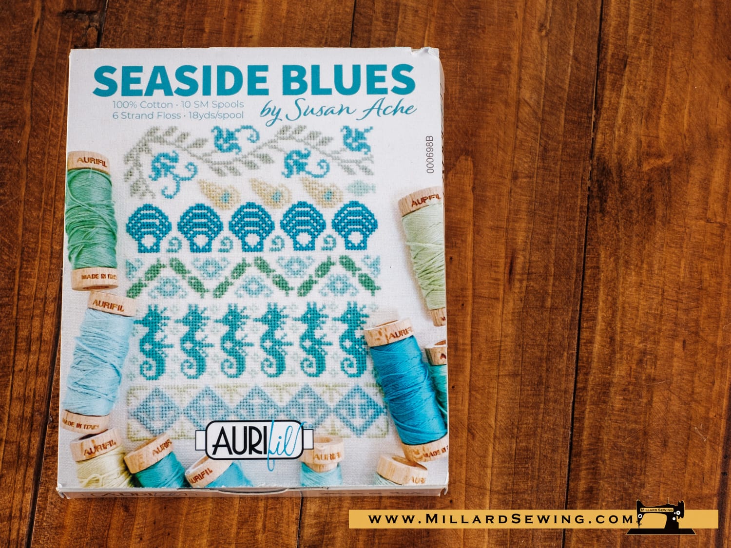 Our favorite cross stitch queen, Susan Ache, has outdone herself with Seaside Blues. Of course Susan fashioned the perfect mini masterpiece to showcase each and every ones of the 10 wistful hues. The chart is available for free on Aurifilโs website.