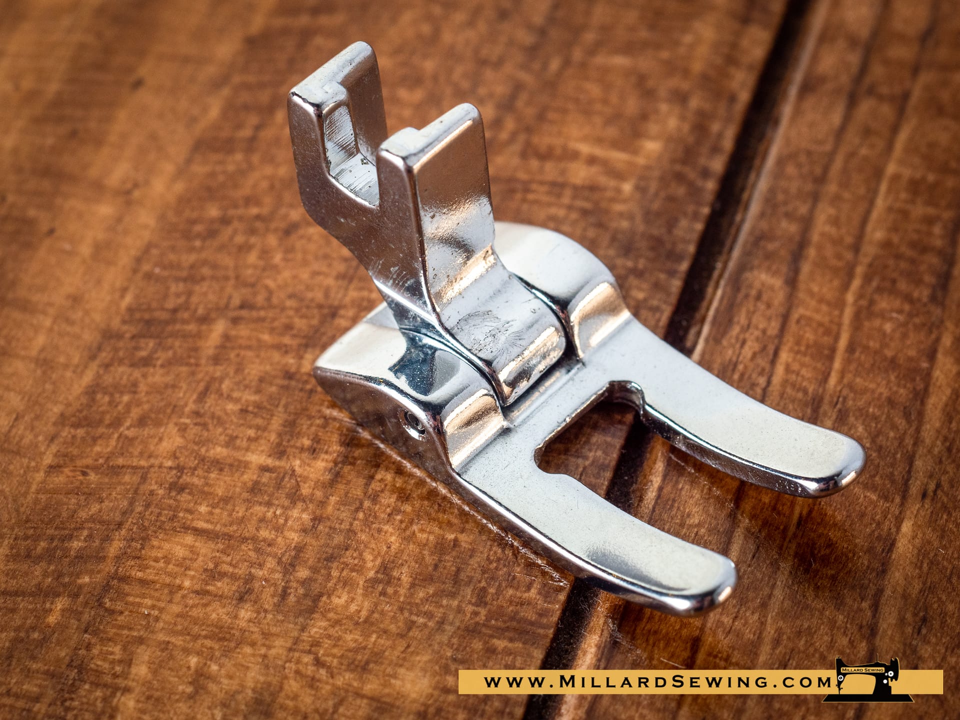 Buttonhole Foot, Metal – open toe, low shank. See decorative stitches and satin stitches with ease. The underside of the foot is grooved; stitches pass easily beneath the foot. Use to sew buttons on by machine; the open toe makes it easy to see the holes of the buttons.