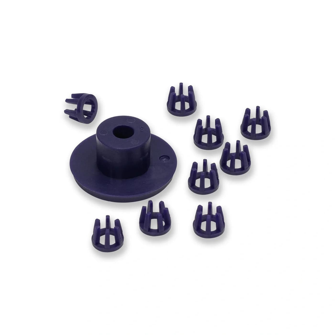 Small parts with an important function Tool holder and height adjustment – anyone who frequently works with the VARIO Creative Tool from Prym will particularly appreciate the inlays. They ensure that all tools for punching, riveting or attaching eyelets and snap fasteners are held securely in the VARIO Creative Tool and work precisely. Spare parts for VARIO Creative Tool If you frequently insert and remove the various hole and processing tools, it can happen that the inlays no longer function optimally. The small tool holders also tend to fall off the sewing table unnoticed. With this set specifically for the VARIO Creative Tool, Prym offers an uncomplicated replacement: It contains 9 tool holders and a height adjustment made of high-quality plastic.