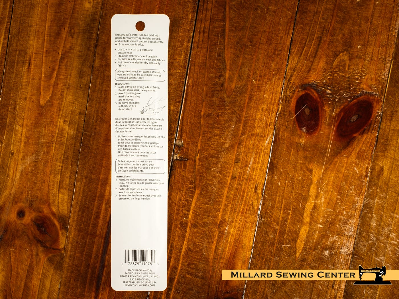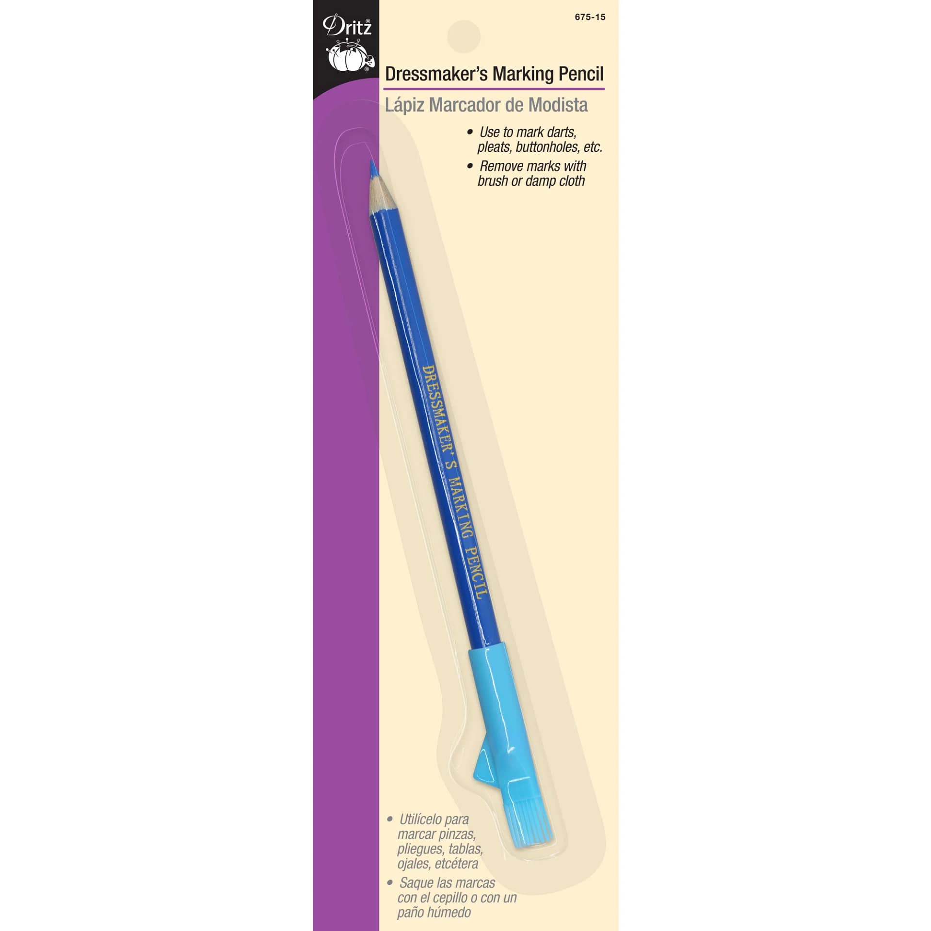 The Dritz Dressmaker’s Blue Marking Pencil is perfect for a number of fabric-based projects. This pack contains one dressmaker’s marking pencil and a brush eraser. A valuable addition to your sewing kit, this handy marking pencil is used to directly transfer pattern markings for darts, pleats, buttonholes and more onto your fabrics. When your project is complete, you can easily remove the marks using a damp cloth or brush.