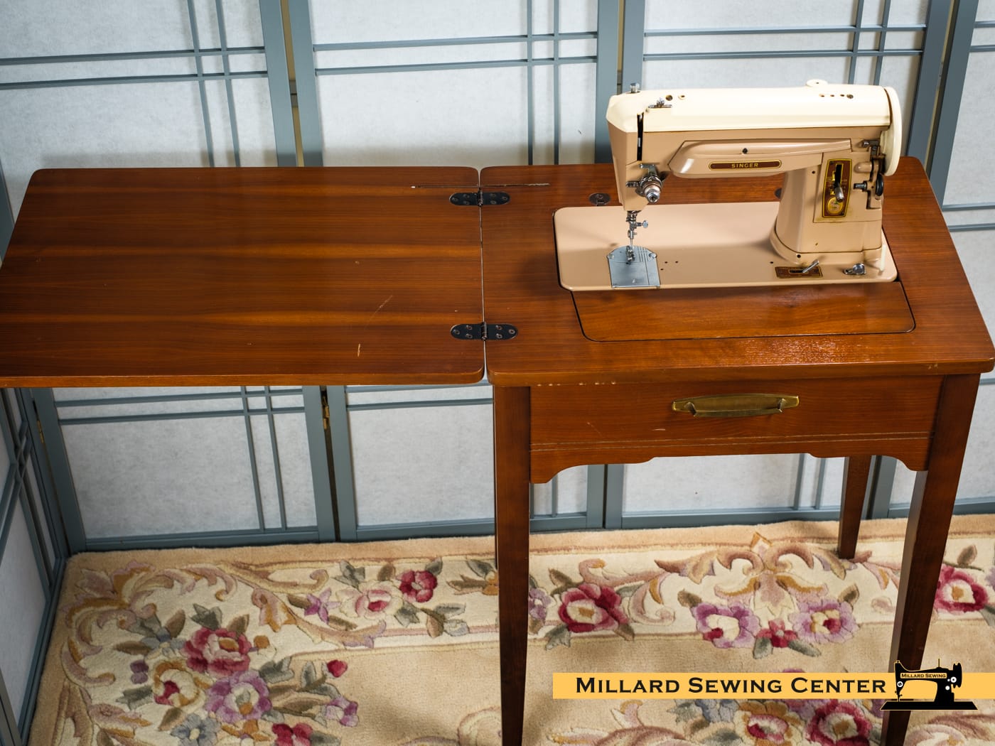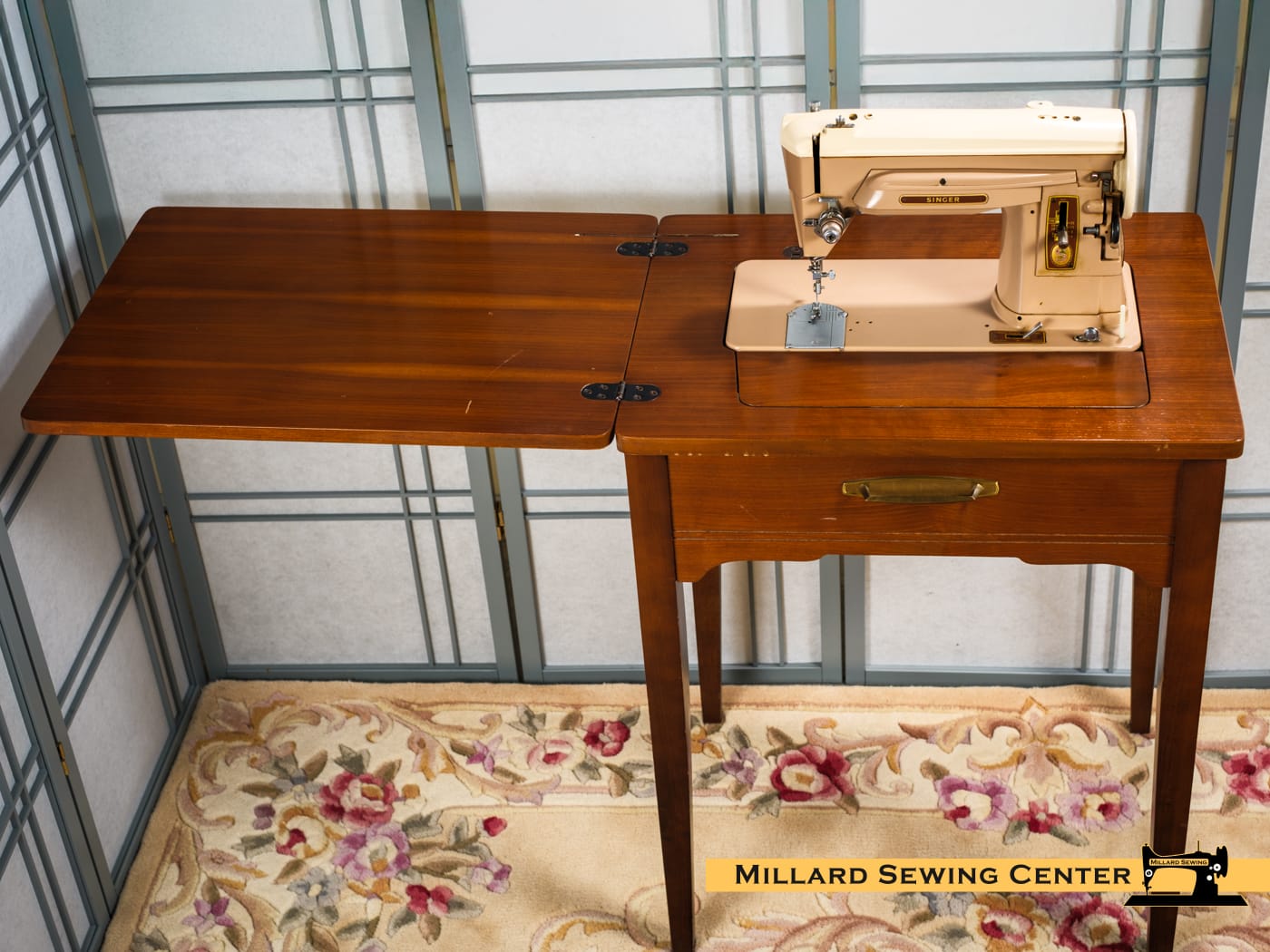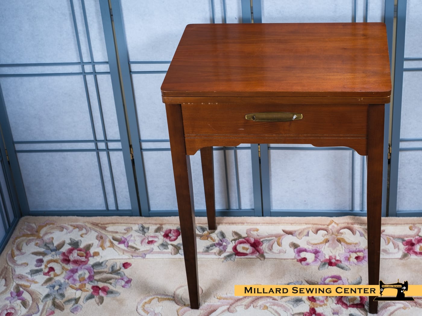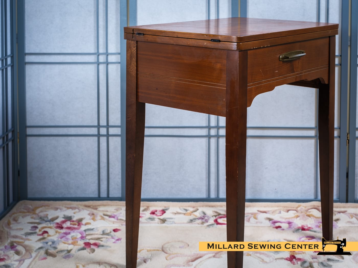 This cabinet comes to us from the age of the Touch & Sew and Stylist model Singer Machines. It will also fit the older machines equally well when paired with a cabinet lift bracket 124450 or similar. If you are looking for a cabinet that is simple in design and in great shape this might be the one for you!