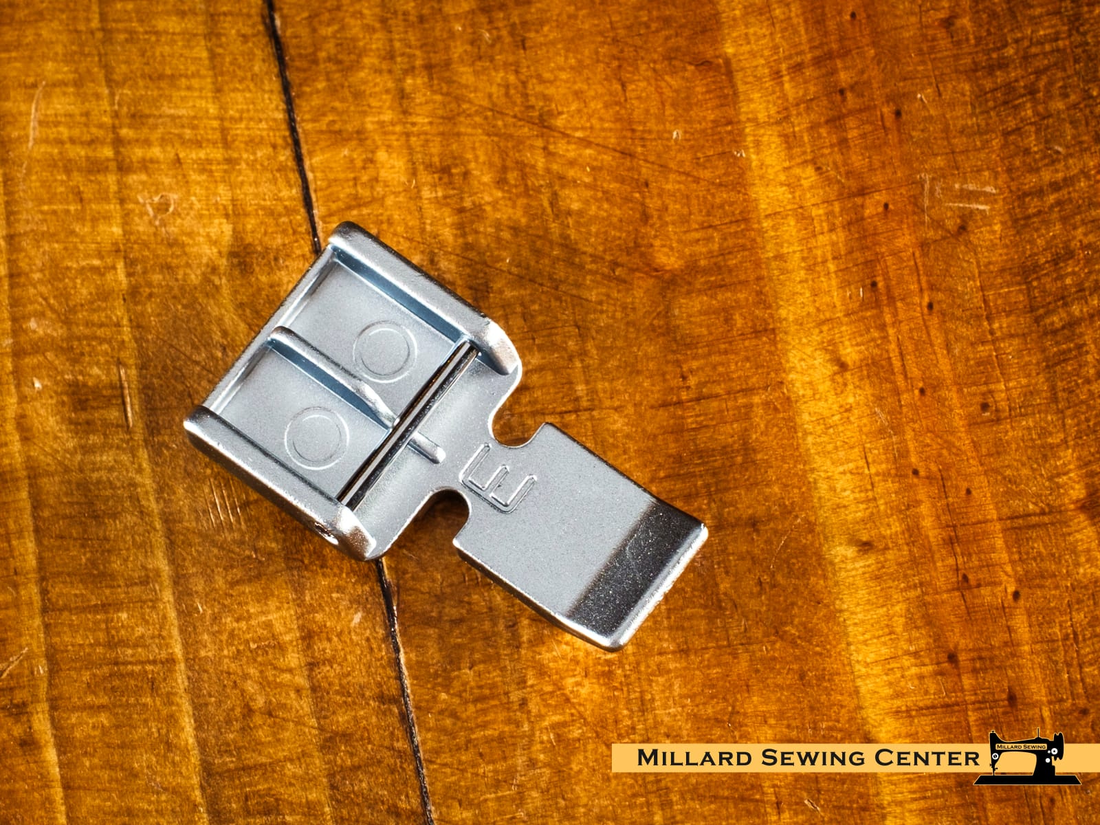 This foot can be set to sew on each side of the zipper by adjusting the position of the foot and tightening the thumb screw. Also great for sewing close to piping.